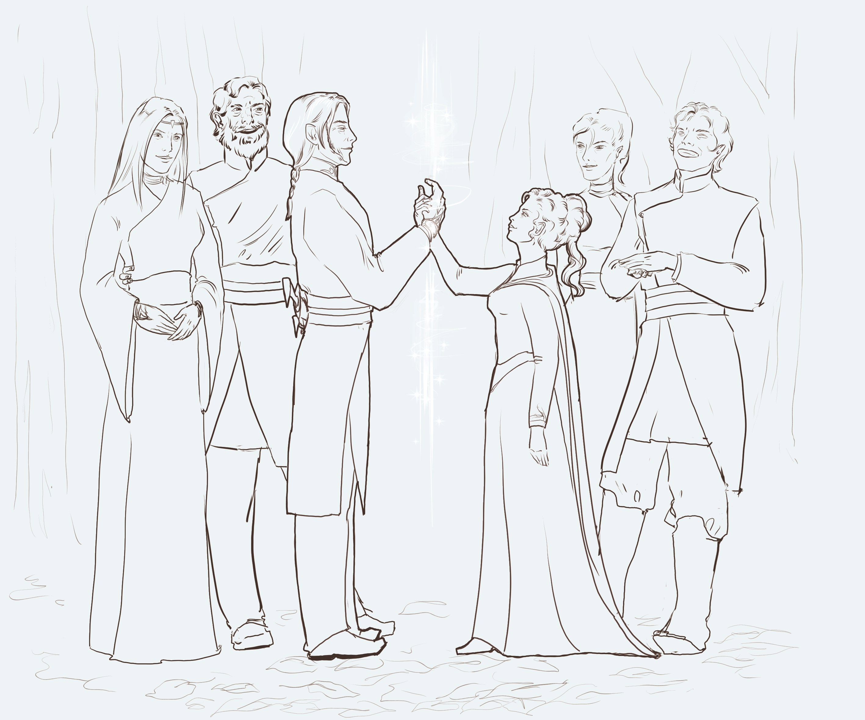 Это финальная сцена из последней моей книги, как я её вижу. Позже, возможно, доработаю, если время будет. Там ещё одна пара должна быть, но на неё не хватило пороху. Если кому-то слишком сладенько, спойлерно и по-девичьи - могут отвернуться