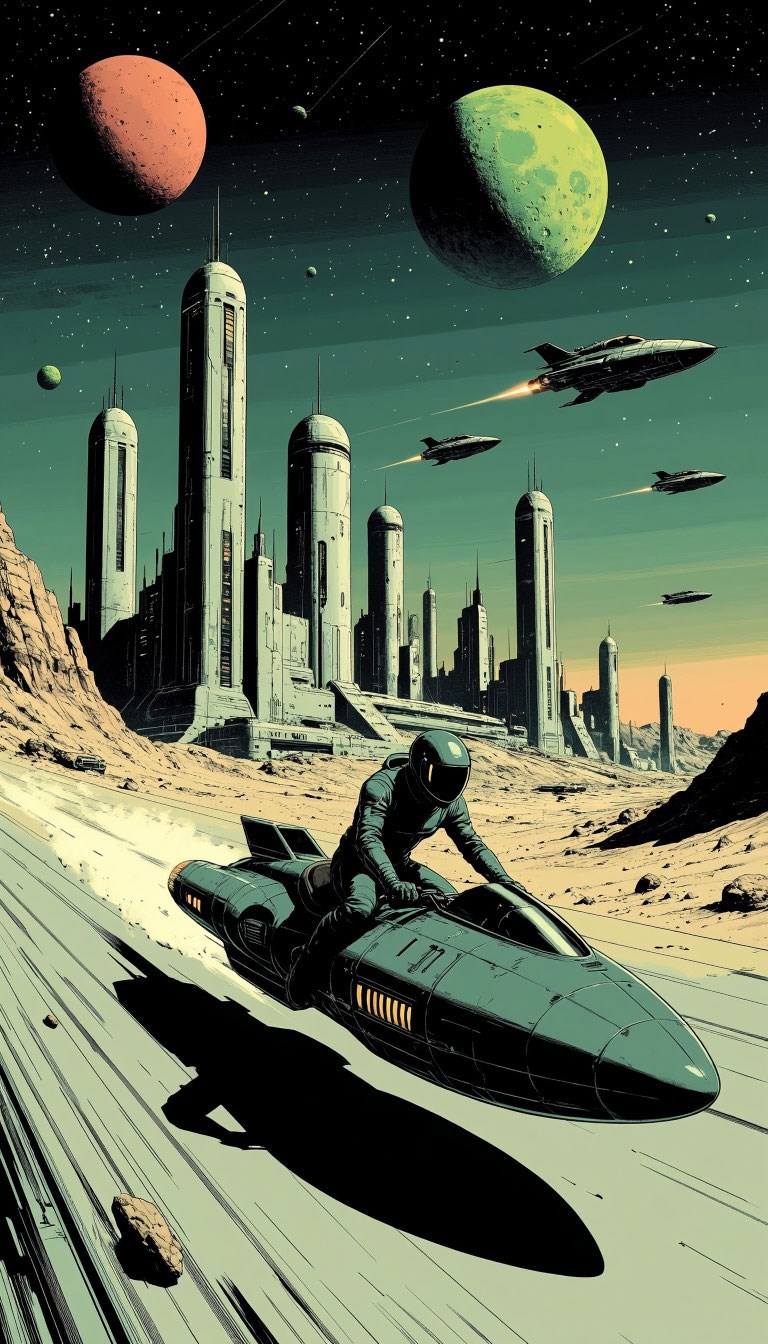 Ховербайкер Автор: Виктор Айрон (Санитар) Заставить нейросеть сгенерировать ховербайк, парящий мотоцикл было сложно. Но мы справились. фантастика, арт, иллюстрация, компьютерная графика, нейросеть 31 Пожаловаться