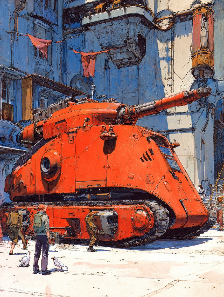tank with a Gauss gun, manapunk. Art by Syd Mead--chaos 5 --ar 3:4 --stylize 150