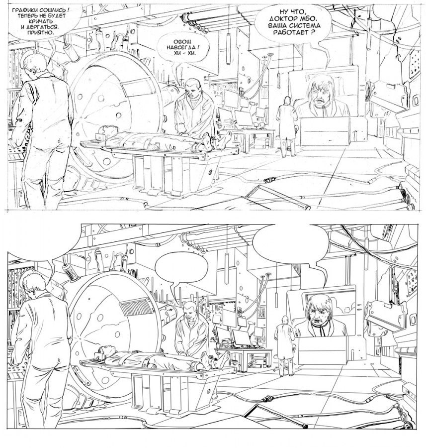 Сцена на испытаниях адском мозгодовки. Автор: Александр Ерёмин Кадр из комикса Хакер. боевая фантастика, иллюстрация, киберпанк, комикс, графический роман 13 Пожаловаться