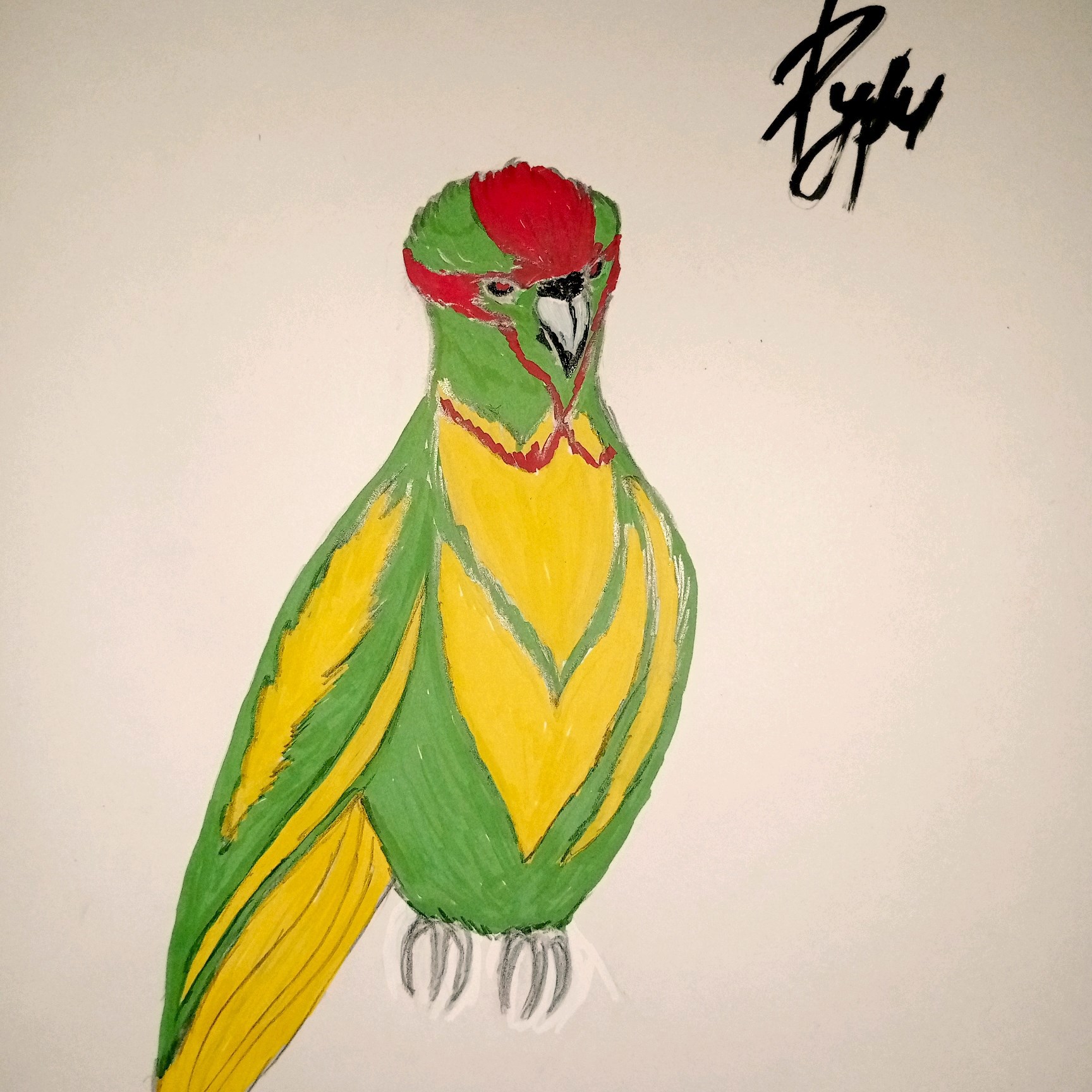 Я всё-таки отважилась раскрасить черновой вариант портрета своей попугаихи. Обычно красками всё порчу, такой вот у меня опыт. Но это акриловые фломастеры и вроде даже неплохо вышло