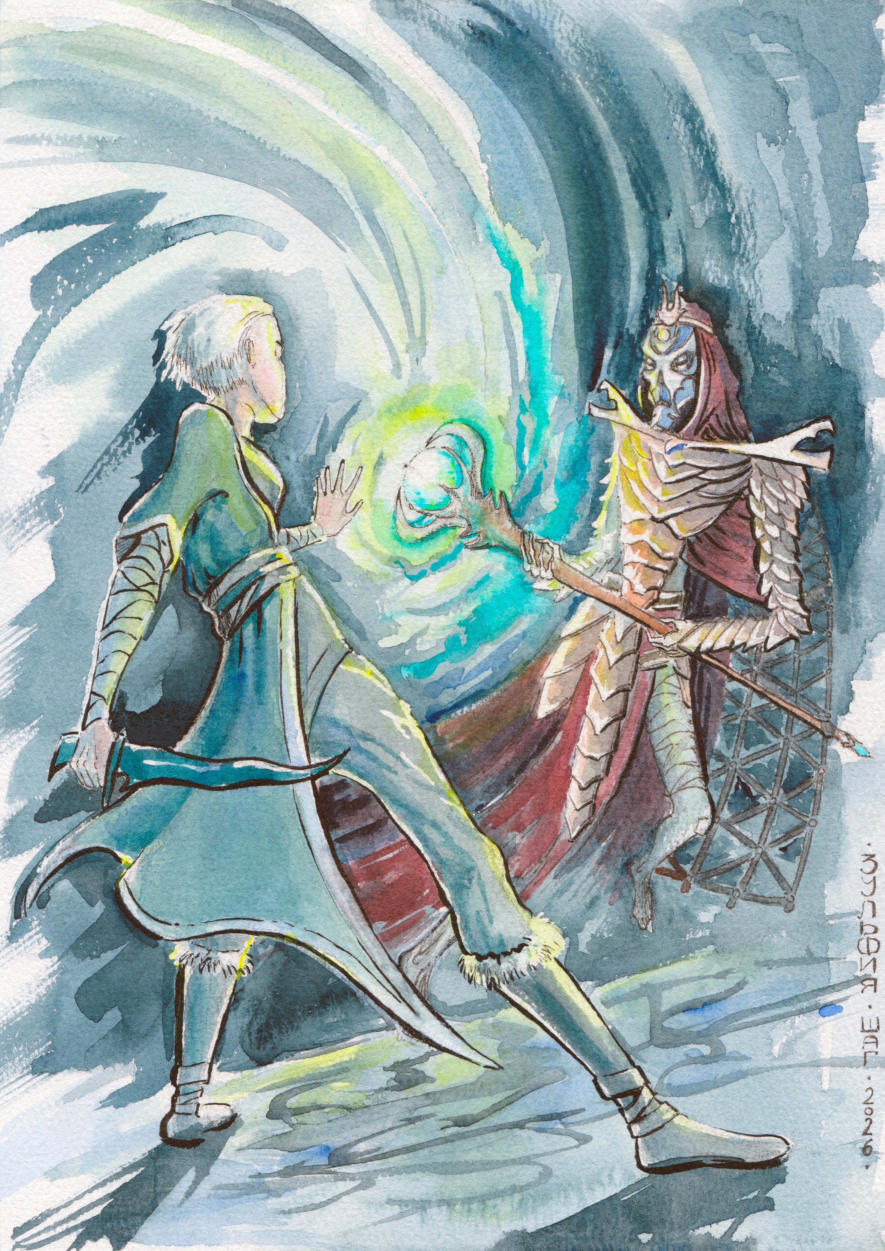 Битва с драконьим жрецом Автор: Зульфия Шаг Иллюстрация к 11 главе шестой части "Двадцать первое Руки дождя". персонажи, рисунок, рисунок акварелью, иллюстрация, книжная иллюстрация, фэнтези, арт, акварель 18 Пожаловаться