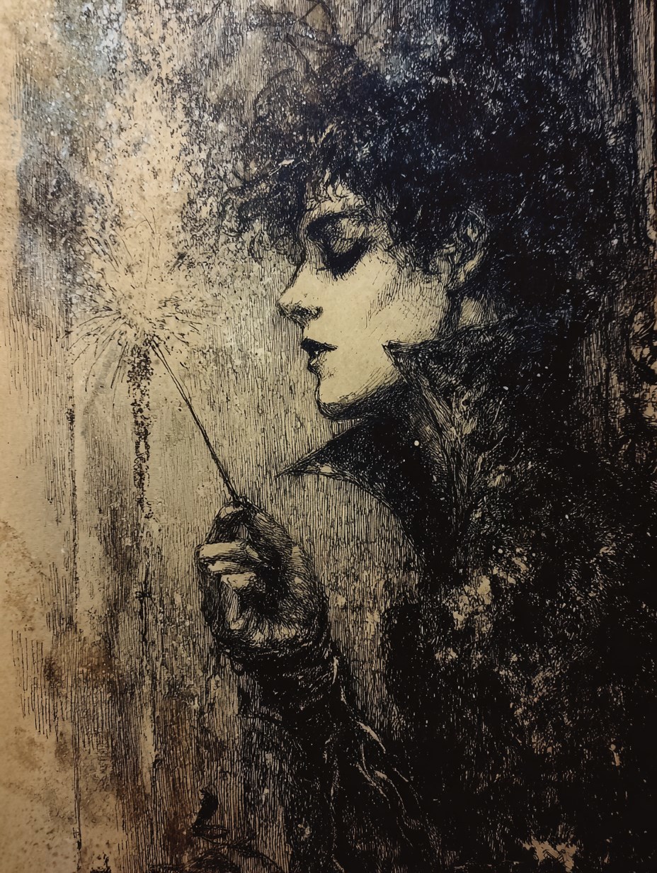 Throwing words... in the fog of twilight Brilliantly Through the infinity of dreams Taking images from the fireworks of signs Sleeplessly Melt into the dust of old words... Symbolism, tragedy. Aubrey Beardsley style --chaos 5 --ar 3:4 --profile h8t1d85 --stylize 150