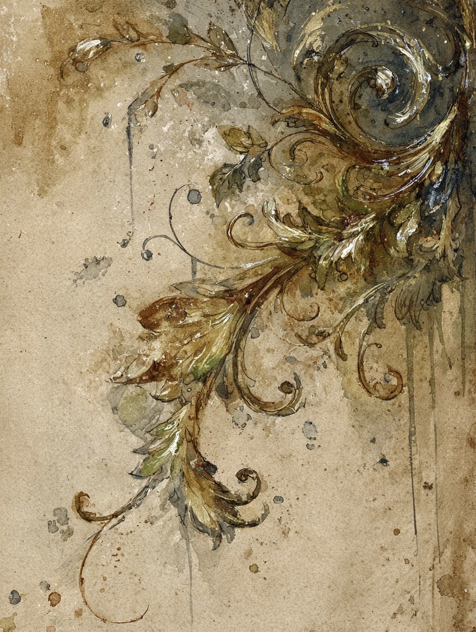 An Corner pattern on a sheet of paper. On the theme of Yule Night. 18th century. --chaos 5 --ar 3:4 --profile h8t1d85 --stylize 150