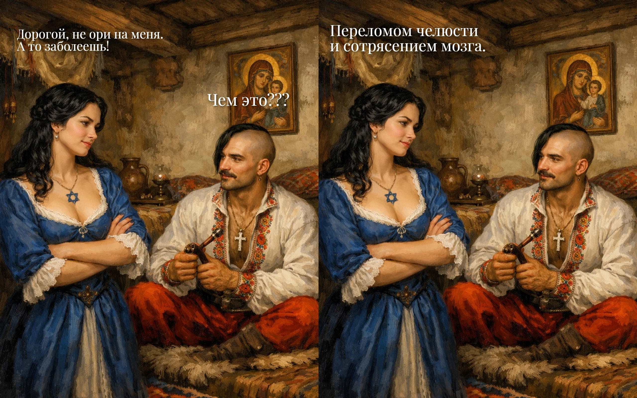 Просто предупредила Автор: Natali_Cat приколы, разное вероисповедание, симпатичные пары, хата, xvii век, запорожские казаки, евреи 25 Пожаловаться