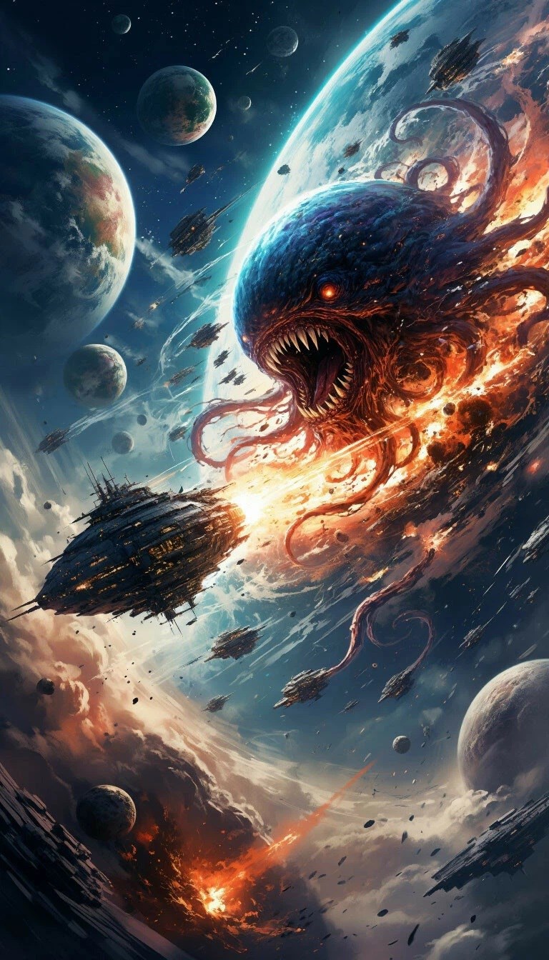 Космический пожиратель Автор: Алекс-Александр чудовище, нейросеть, космическая фантастика, космос 28 Пожаловаться