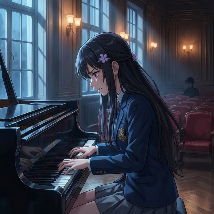 Рита за роялем Автор: Алексей Беркутов Рита, злясь на Артура и на саму себя играет Лунную Сонату ч. 3 (Presto agitato) персонажи, девушка и музыка, нейросеть и я, аниме 7 Пожаловаться