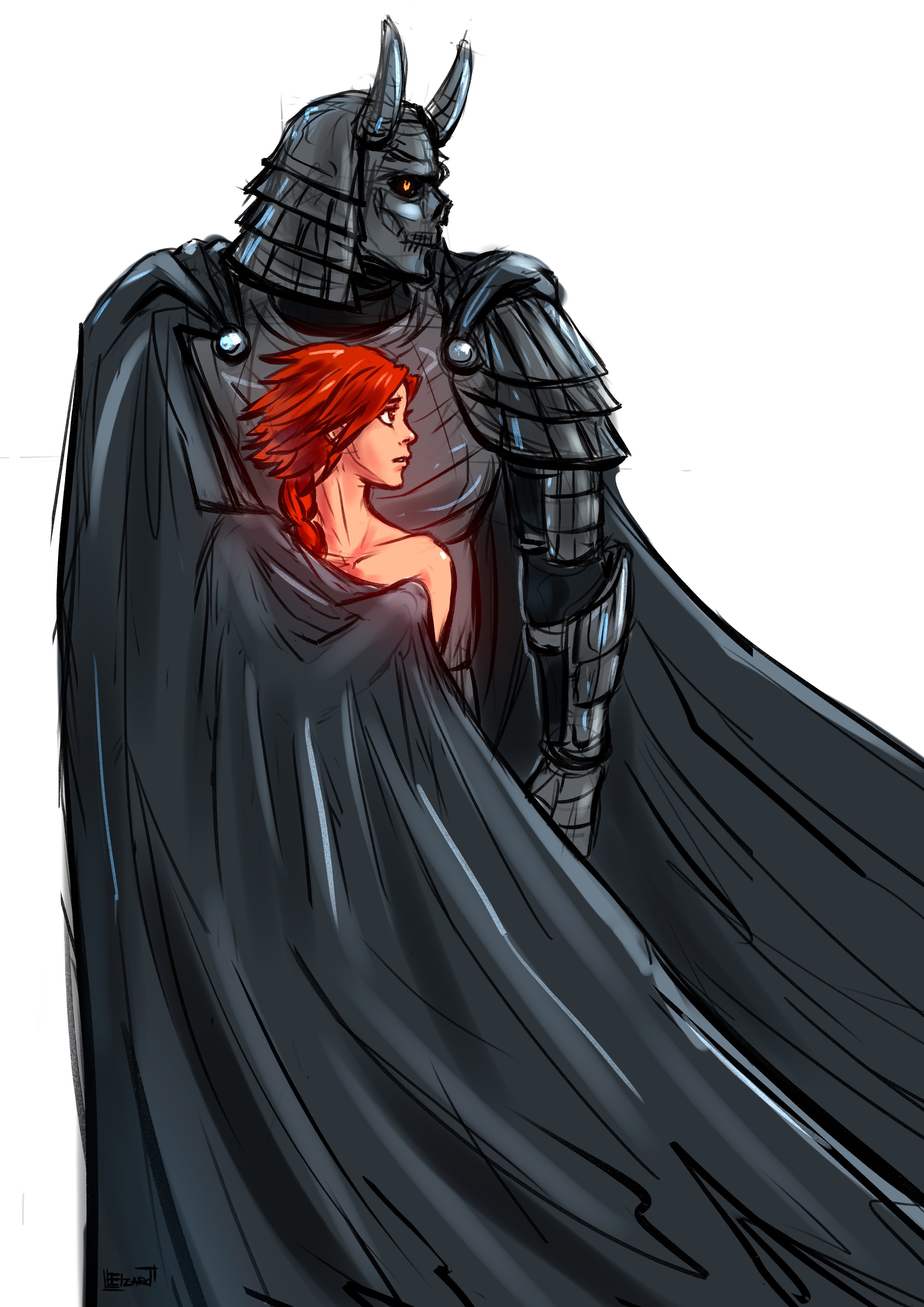 У красаучека с предыдущего арта есть доспехи, и выглядят они так)...и да, она голая)