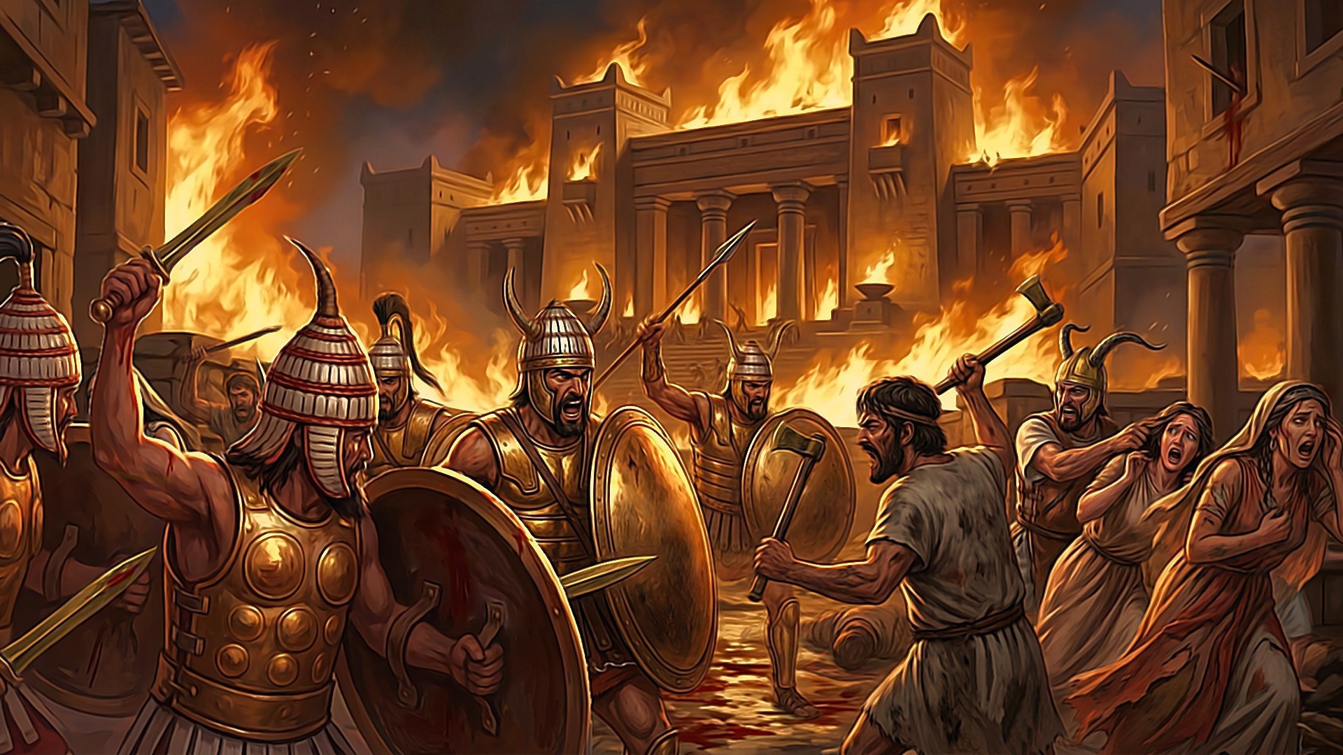 Леденящие душу крики. Хохот и возбуждённый рёв, предвкушающий весёлую потеху и удовольствия. Чавканье мечей, пронзающих плоть. Треск раздираемой ткани. Звуки торопливо свершаемого насилия. Хрипы. Стоны.