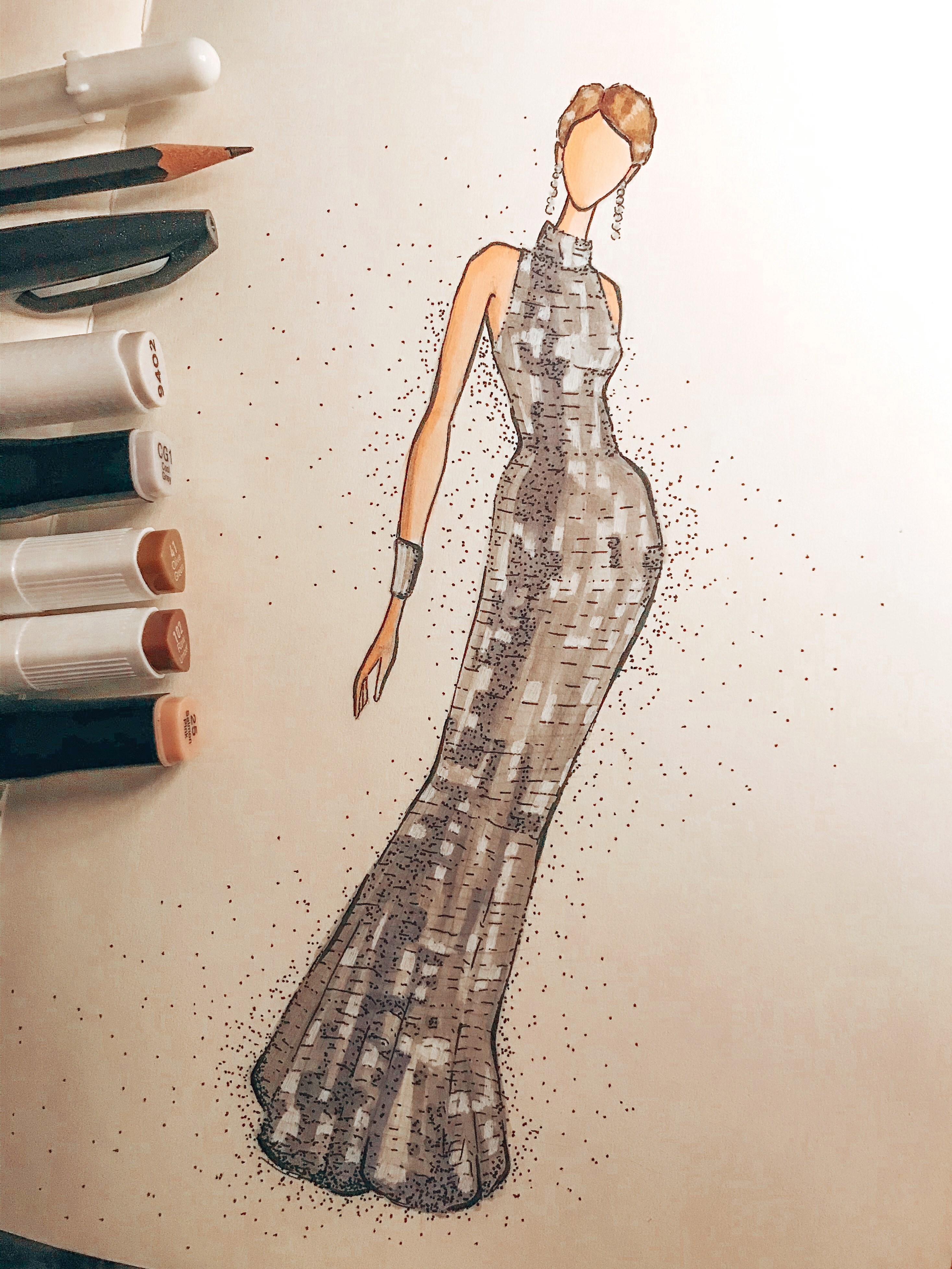 Фешн-скетч #7 Автор: Луна Чародеева Отработка блестящей фактуры. Набросок платья. Спиртовые маркеры. рисунок, скетч, фешн 35 Пожаловаться