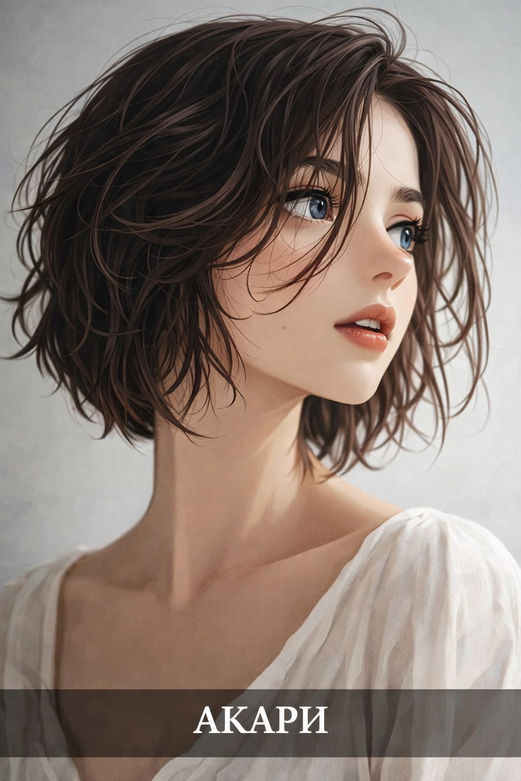 Акари обладает естественной красотой — той, которая не требует усилий. Тёмные волосы мягко обрамляют лицо, взгляд внимательный и глубокий, словно она всегда видит чуть больше остальных.