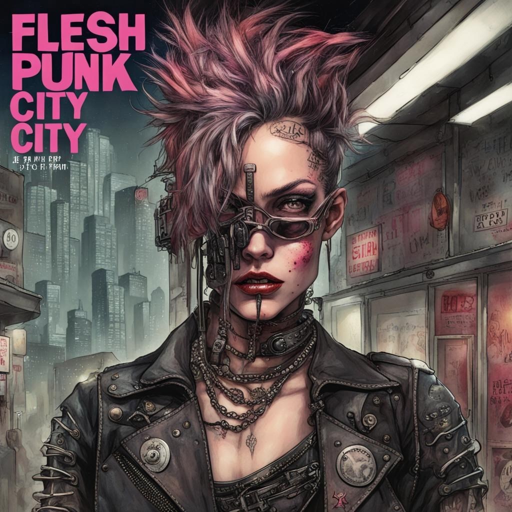 Fleshpunk City Автор: Лев Урбан фантастика, арт, девушка, нейросеть, персонаж, портрет 23 Пожаловаться