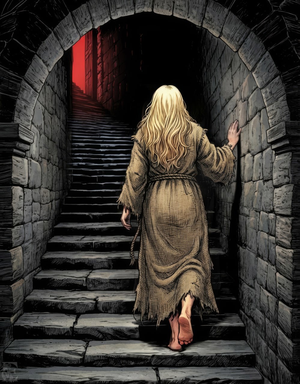 Она поднималась ещё довольно долго. Пыли вокруг стало меньше, впереди всё отчётливее доносилось гулкое завывание. Девушка двигалась медленно и осторожно, стараясь прижиматься к внутренней стене замка. Наконец, впереди показался свет. Олеся невольно закрыла глаза рукой. Воздух вокруг стал заметно свежее.