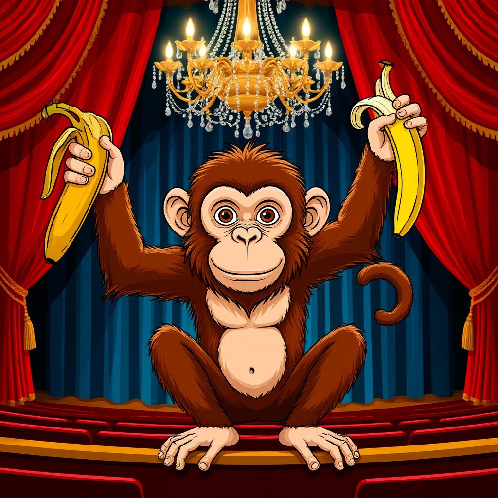 Обезьяна в театре Автор: Виктор Викторов Обезьяне захотелось развеяться и она отправилась в театр чтобы покутить театр, обезьяна 38 Пожаловаться