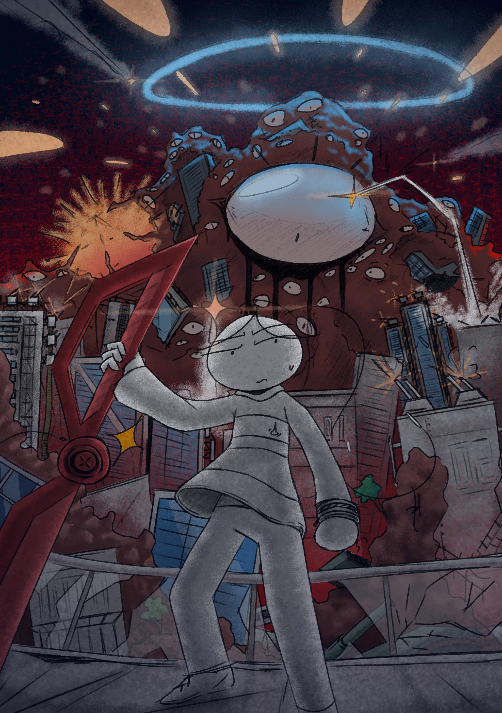 Рекс и первый ангел Автор: Стабилисьян Иллюстрация к девятой главе Электрона ^^ иллюстрация, монстр, герой, городской пейзаж 17 Пожаловаться