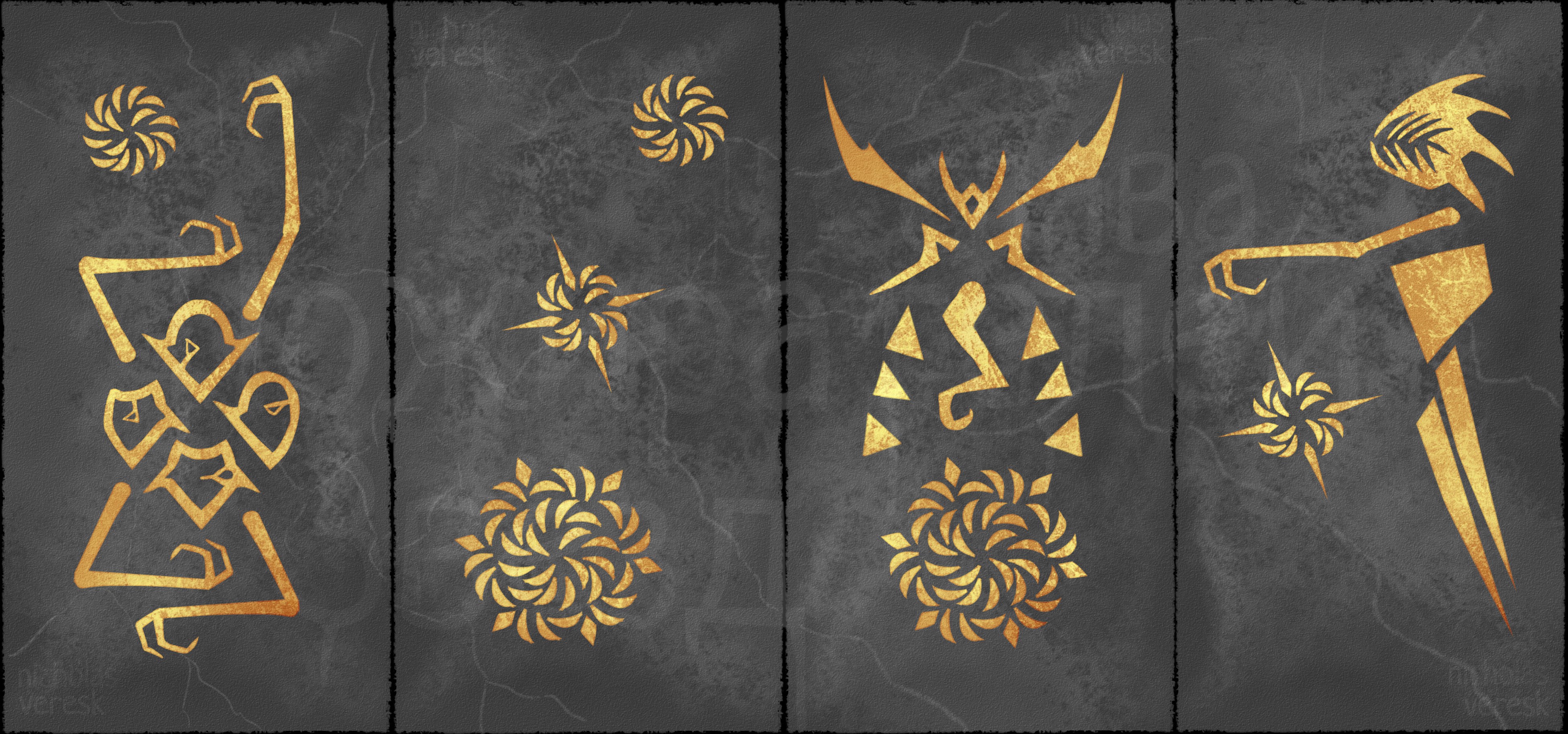 Он прошёлся дальше, обойдя. Четыре трона, спинки их. С обратной стороны был высечен узор, который между всеми связь имел. Только бы стояли они ближе... и были целой картиной той идеи. Единый барельеф, что золотом отлит, слеплён, оформлен.