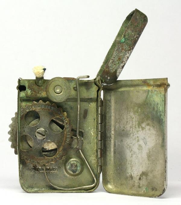 Вот, к примеру, в 1890 году была выпущена такая штука. Зажигалась не кремнем, а лентой пистонов. Тоже ничерта не удобно, но уже вполне себе конкурентоспособная идея (правда, не надолго).