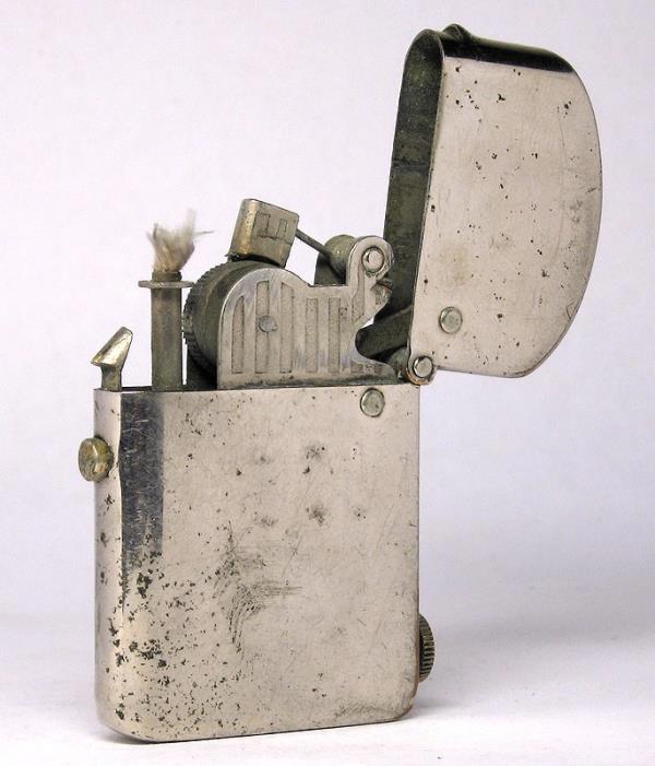 Сначала зажигалки делали из пистолетов, где ударный механизм служил для высекания искры, а вместо ствола делали коробочки с трутом. Далее додумались до фитиля, смоченного горючим веществом. Заменили ударный механизм на колёсико.