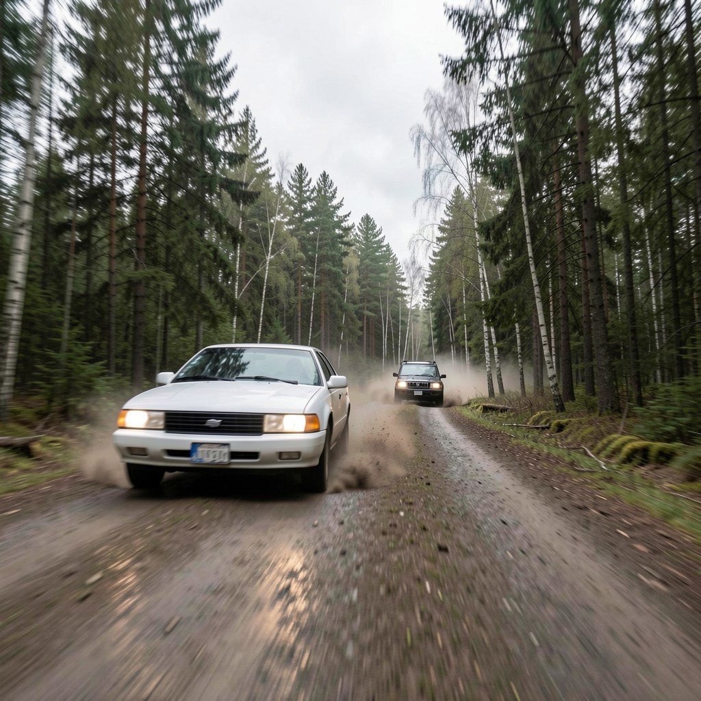 Крис старался на скорости объезжать деревья и кажется, у него получалось. Адреналин хорошо на него сработал. Пули попали в заднее стекло, но не попали в колеса. Видимо банда Тэла была слишком далеко чтобы точно попасть.