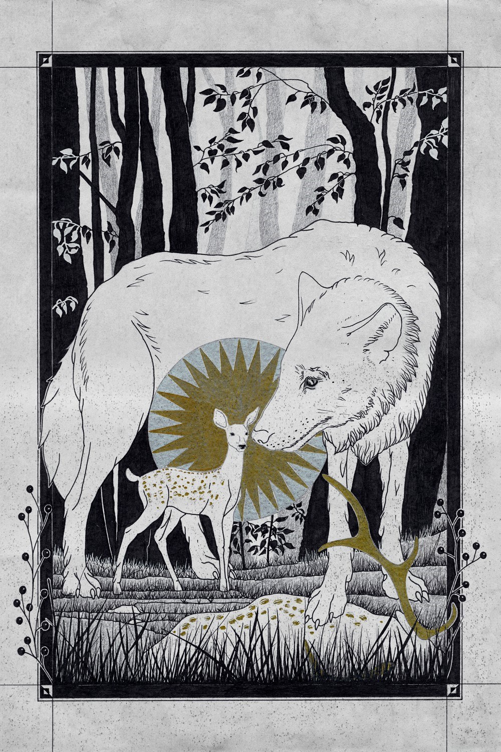 Обе идеи трансформировались в «Жалость зверя», где есть и юность, наполненная светом, и специфическая эмпатия хищника в адрес жертвы. Сочетание звериного и чего-то неуловимого, сверх-человеческого, что изредка искрится в людях и вызывает у хищников аппетит — сюжет рисунка.