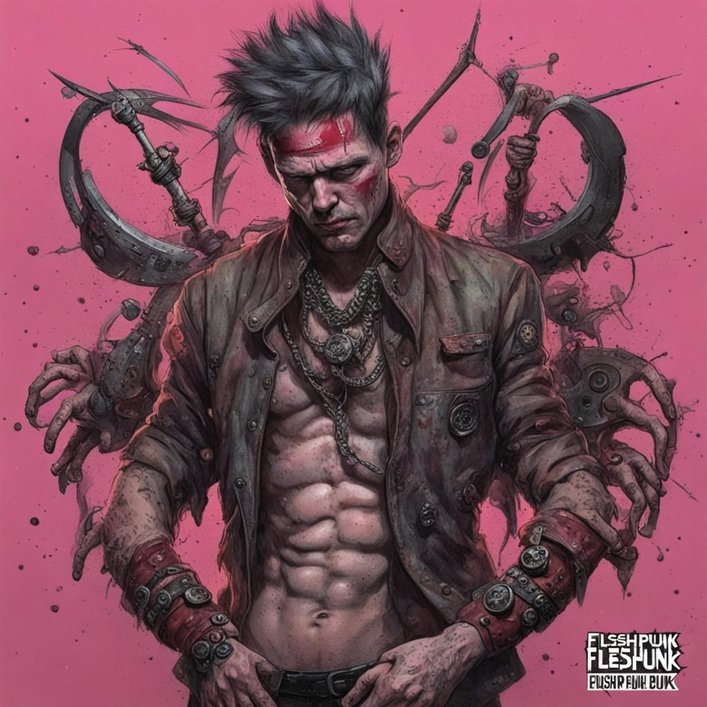 Fleshpunker Автор: Лев Урбан Типичное изображение жителя вселенной Fleshpunk фантастика, арт, иллюстрация, мои персонажи, нейросеть, персонаж, персонажи, портрет, книжная иллюстрация 14 Пожаловаться