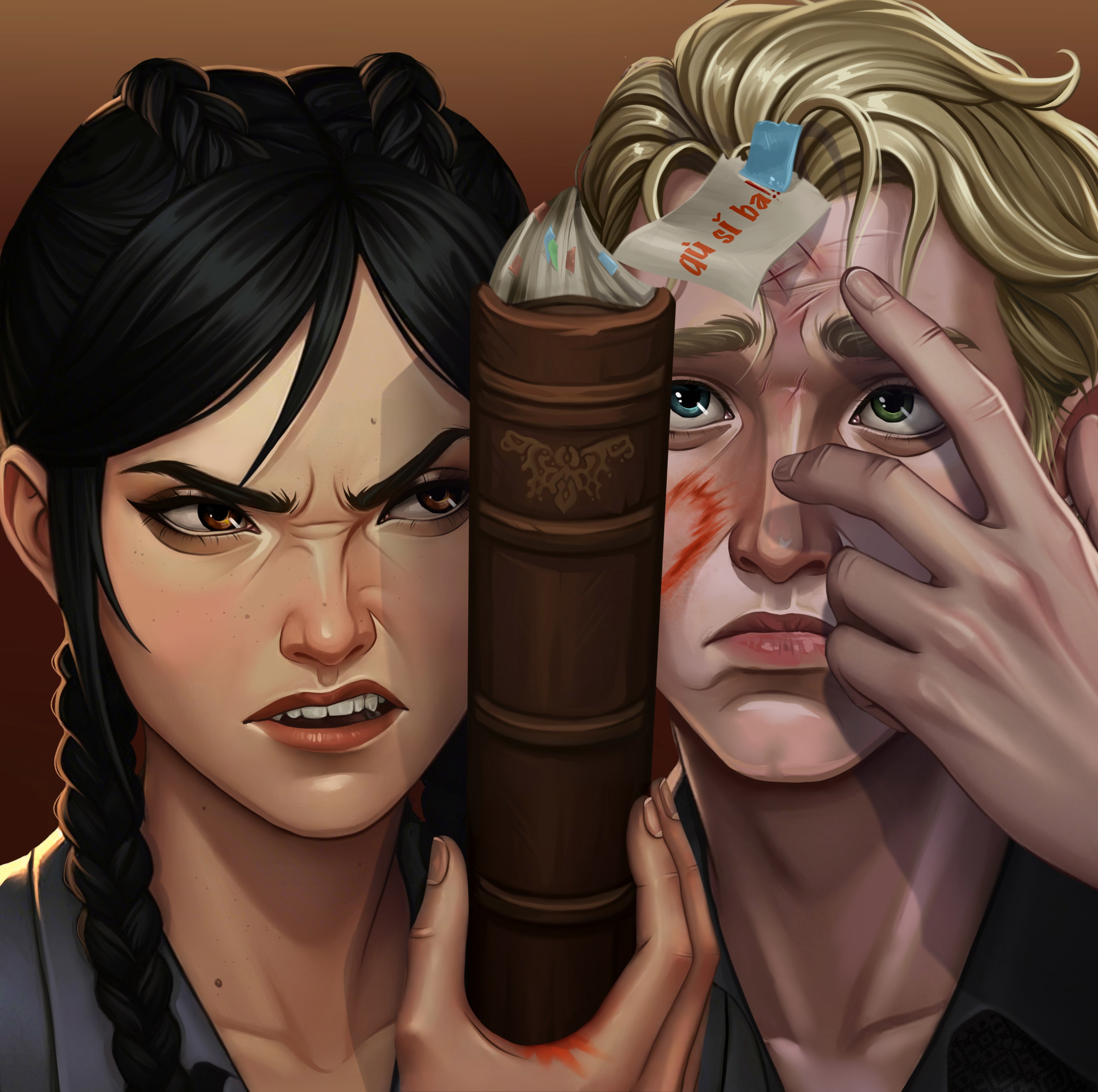 Наверное, больно каждый раз получать корешком книги по лбу - особенно когда прошлые синяки ещё не зажили. (Он сам виноват.)