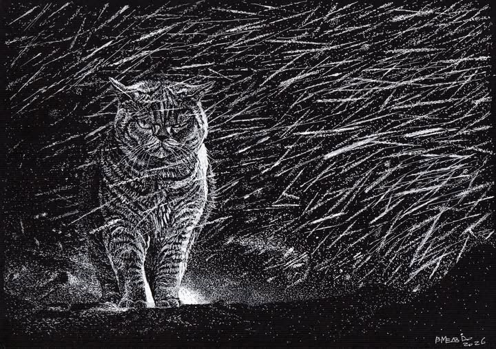 «Почти весна» Автор: Виталий Медведь А4, черный картон, гелевая ручкаdotwork, stipling dotwork 22 Пожаловаться