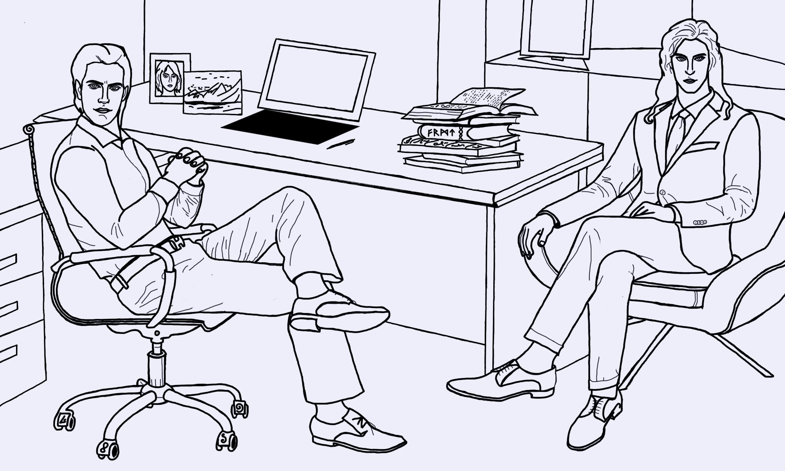 Герои моих романов Перекресток пяти теней и Гамбит некроманта: глава Гильдии и его ассистент.