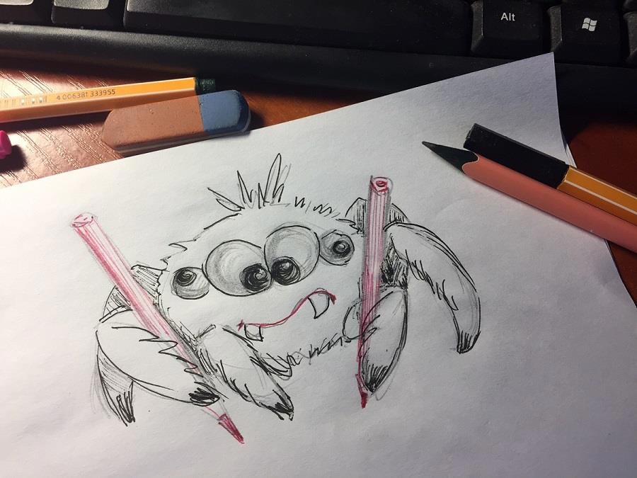 Паучок-редактор, обалдевший от обилия ошибок в работе начинающих писак таких как я, для Toyama в рамках инктобера-2020 (волосы дыбом у паучка тоже от степени офигевания)