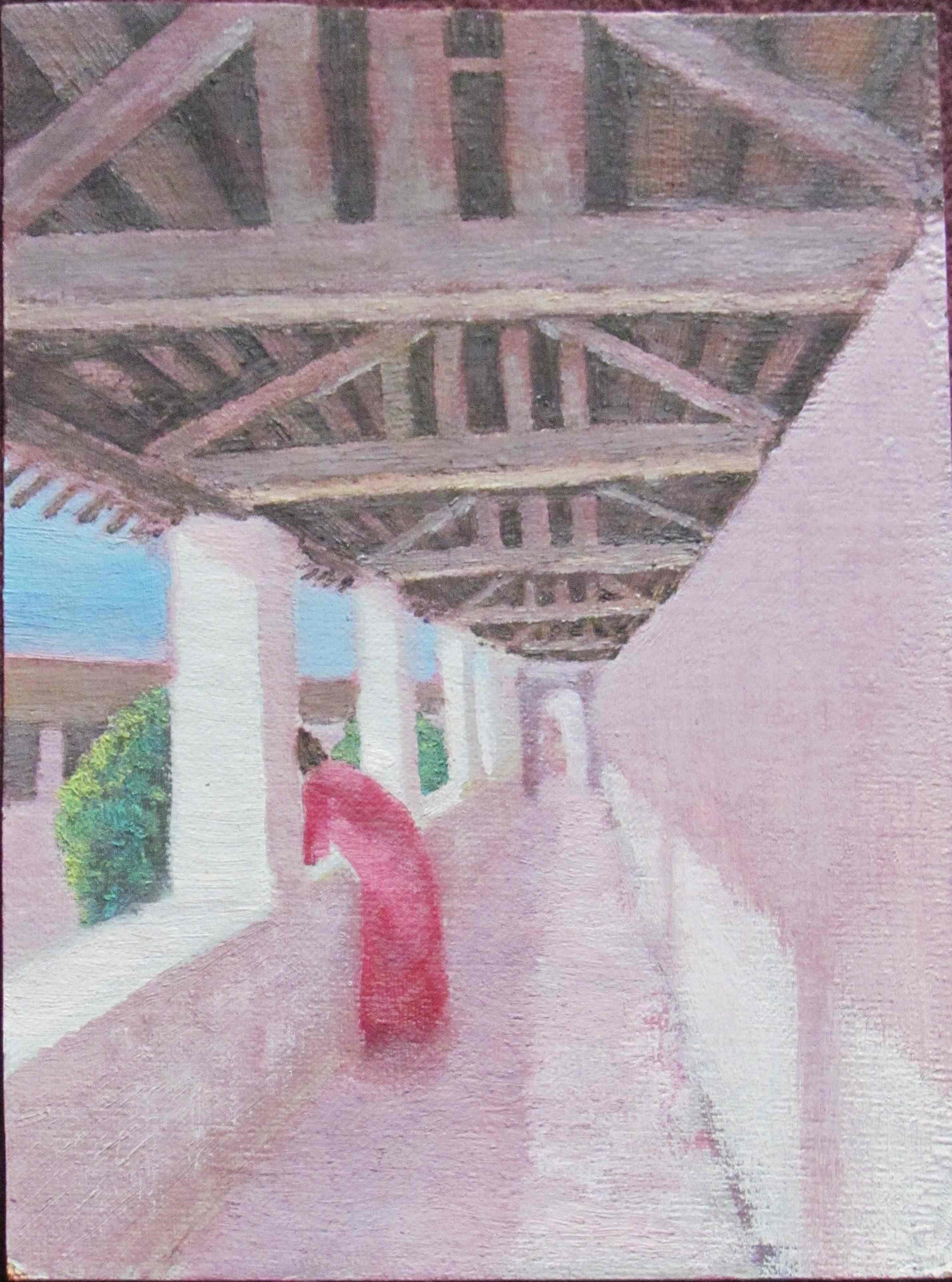 А это по памяти рисовал. Плюс добавил момент сюжетности: кто-то со стены смотрит внутрь монастырского двора)