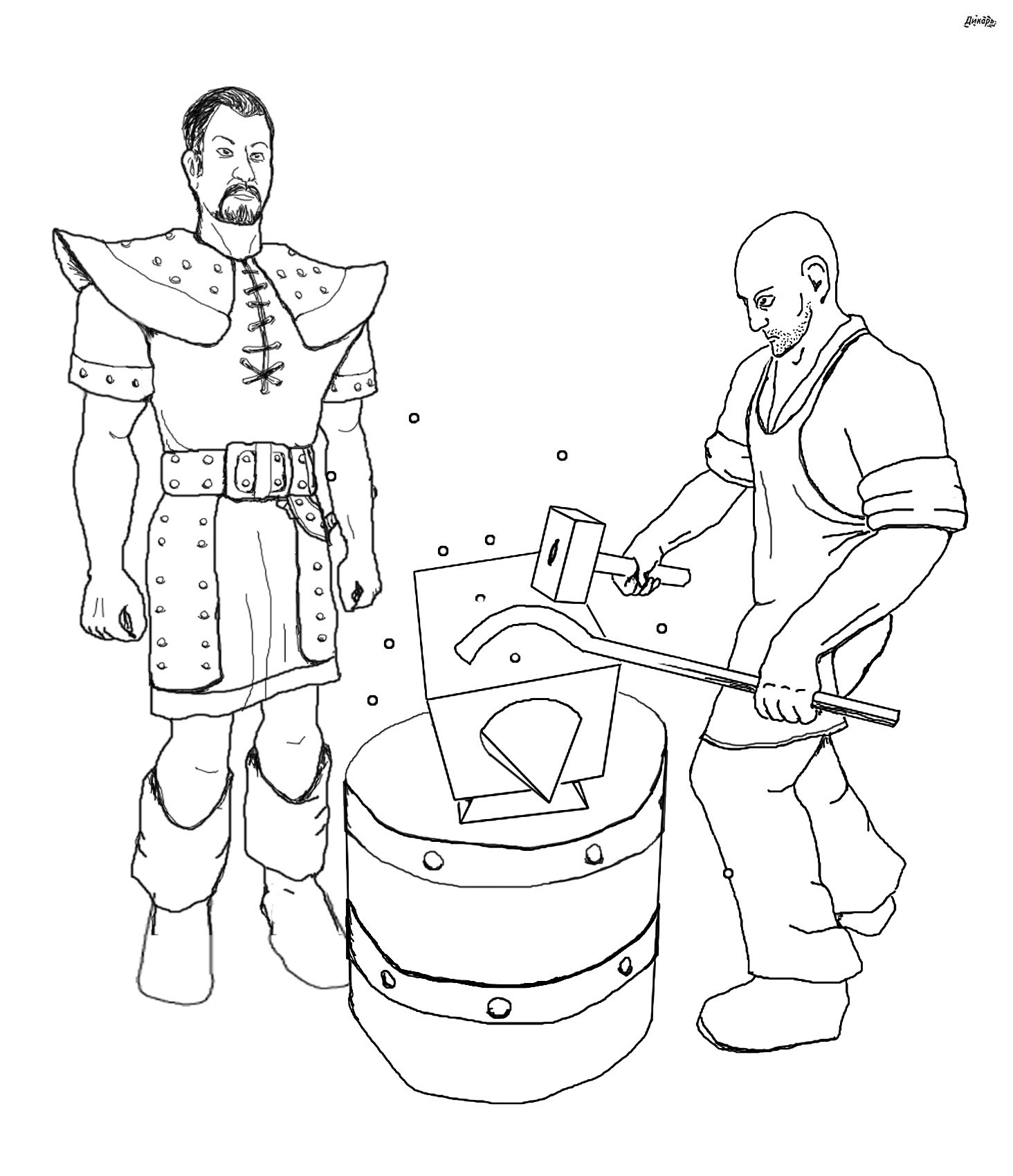 Другой вариант кузнеца и заказчика Автор: Дикарь Заказчик здесь не такой важный, как на прошлом рисунке. Зато кузнец крайне суров. :) графика, иллюстрация, кузнец, персонажи, арт, фэнтези 377 Пожаловаться
