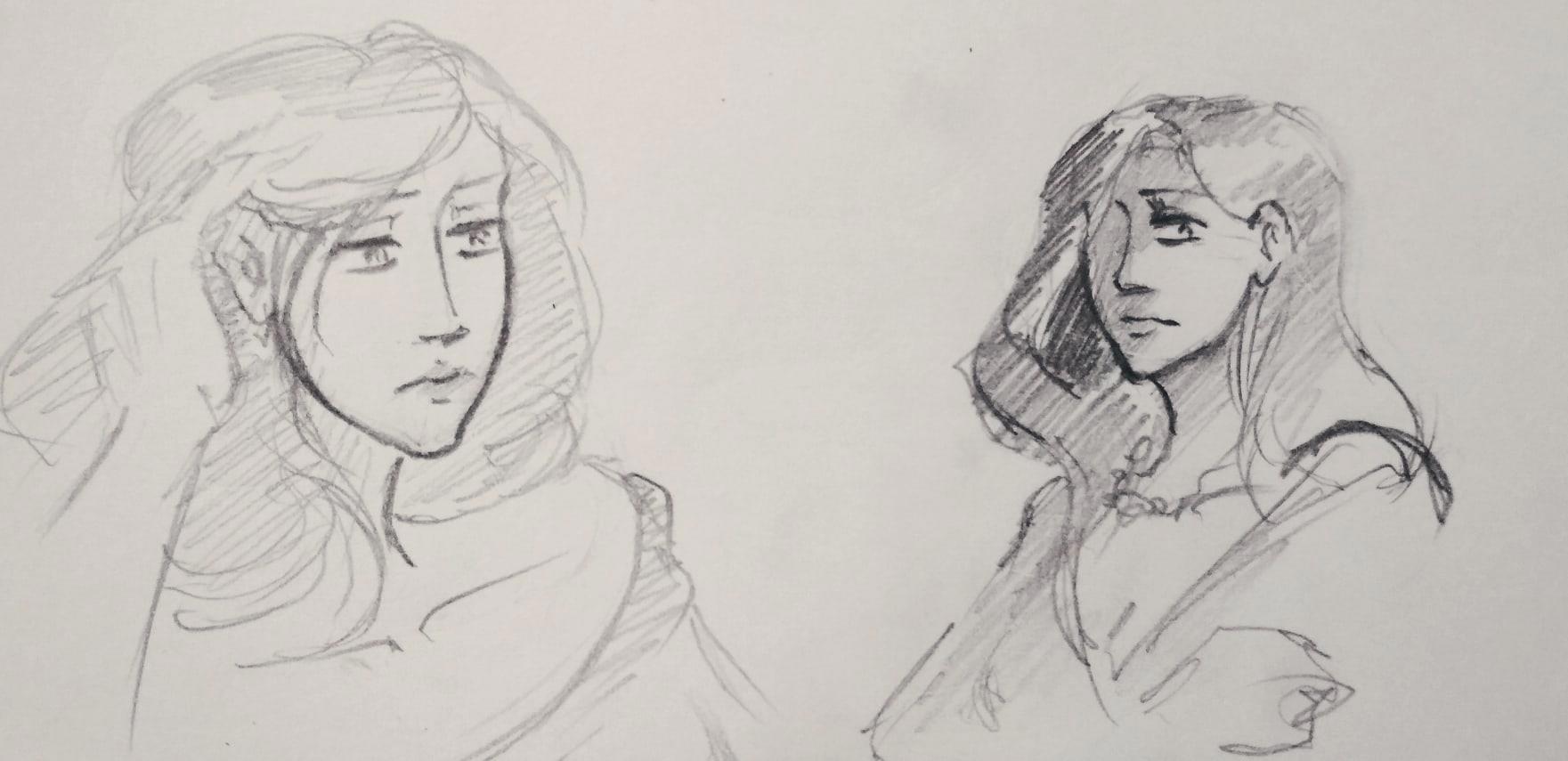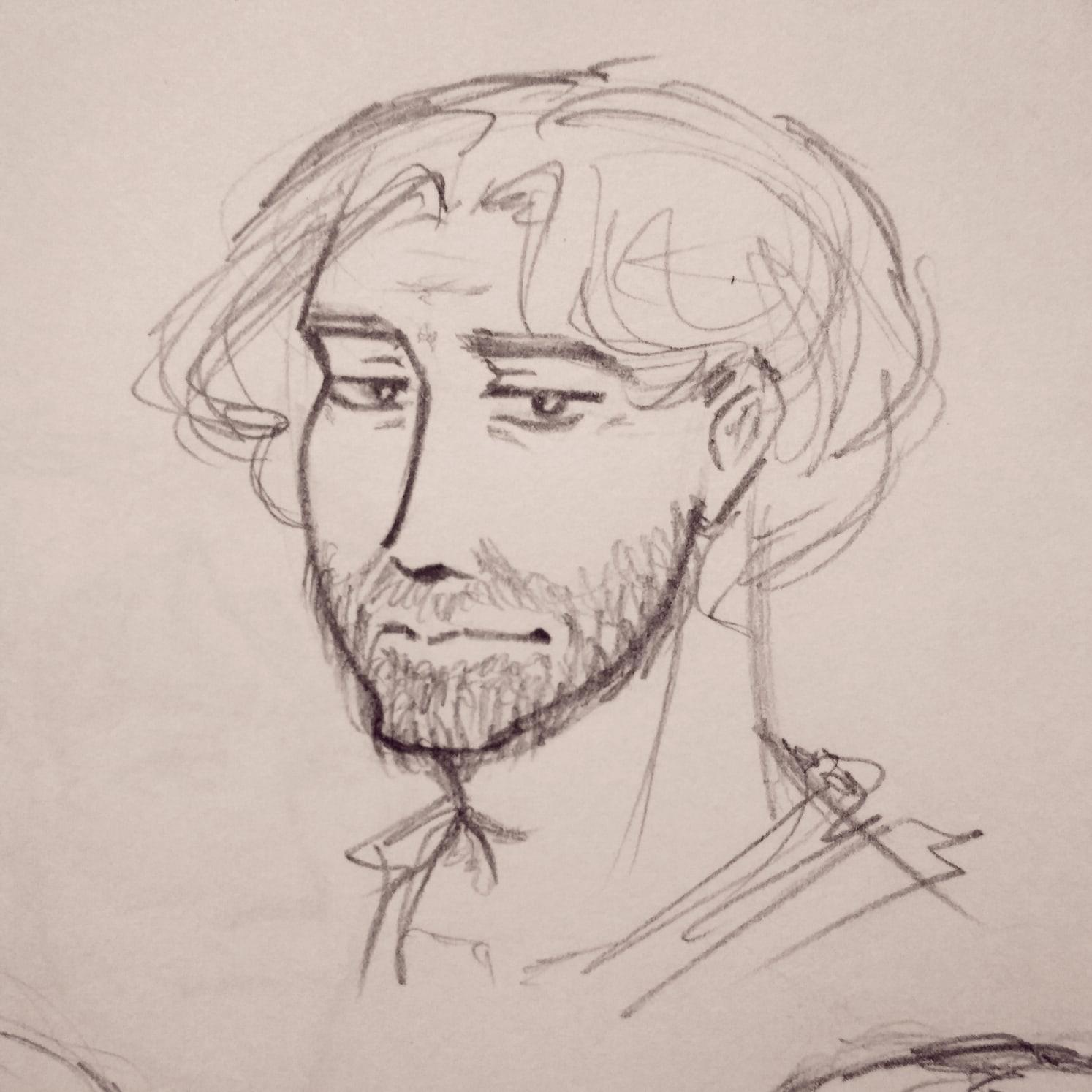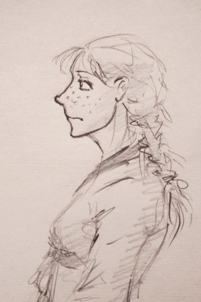 Грустный Эльнес в не соответствующей канону Веревок одежде. По изначальной задумке его лицо должно было быть не слишком красивым, или, скорее... неправильно красивым? Состоящим из специфических черт, но по-своему притягательным. По итогу же я не смогла это изобразить, и мне все говорят, что Эльнес очень красив) Но все же в нем много черт, далеких от общепринятых идеалов. Например, он лопоухий. И его длинные волосы на деле совсем не густые. И еще есть разные детальки.