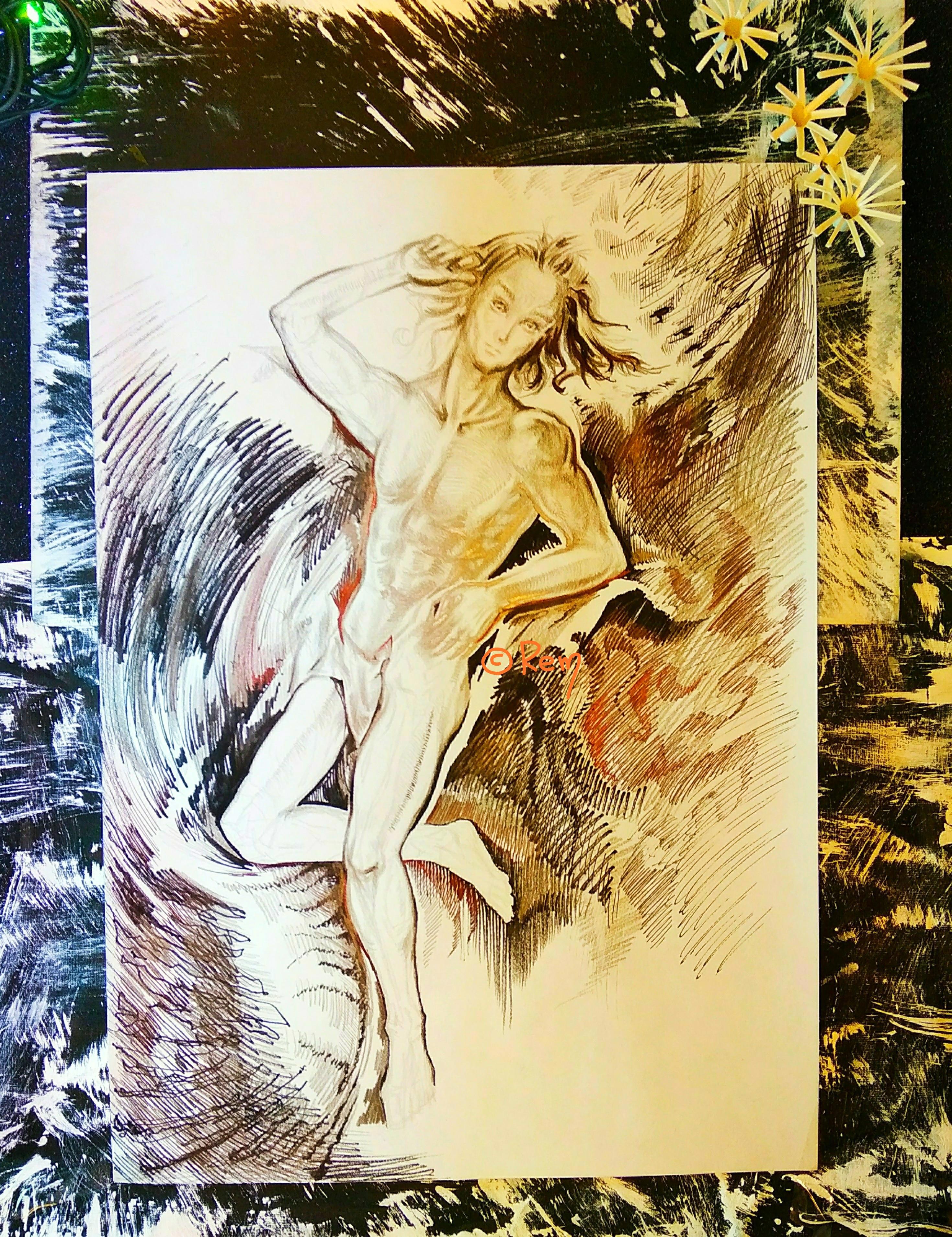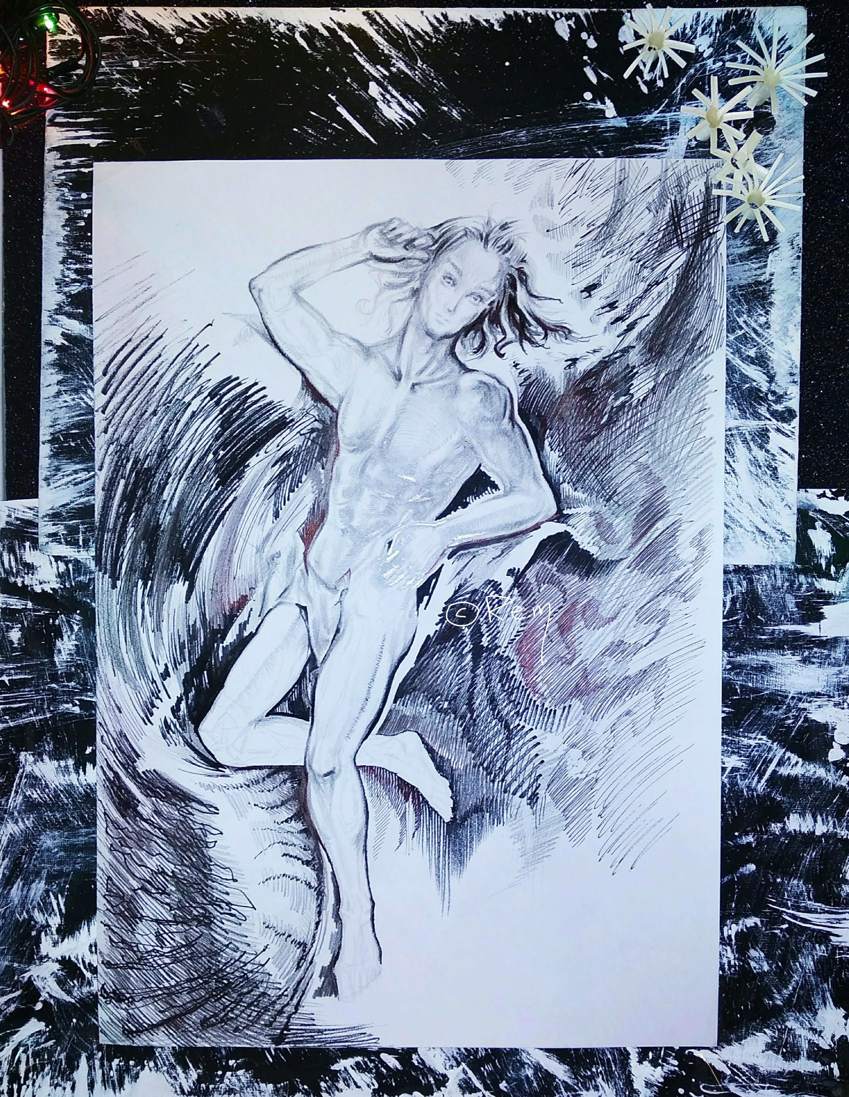 ️ Ужасные научные эксперименты: " дакимакура " (сама идея; я не буду это делать) готова! (Пока делала, подумала, что никуда не годится, т.к. по рефу надо такие вещи делать. Потом начала в телефоне этим заниматься, и получился самый натуралистичный торс в цвете из тех, что у меня есть на данный момент. У меня открытие, в общем). ️