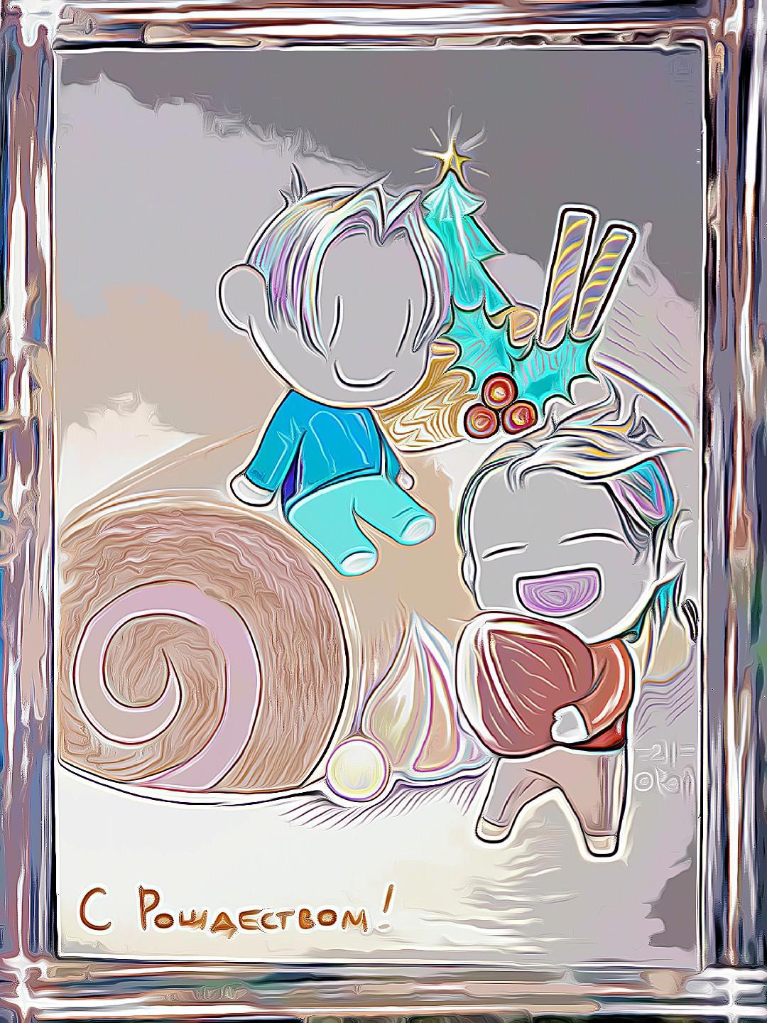 Рождественский рулетик! / Два неба / Автор: Анарема Кеан ️ И это снова мои персонажи в виде каких-то детей :) Есть ещё версии:Сейчас добавлю песню: персонажи, арт, два неба 456 Пожаловаться