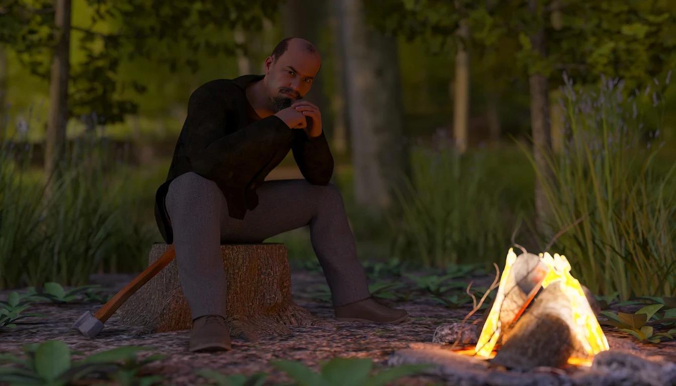 Какой-то левый чел сидит у костра Автор: Tovarish Ilya цифровое искусство, 3d, 3d графика, daz studio, компьютерная графика, мужчина, парень, иллюстрация, портрет 470 Пожаловаться