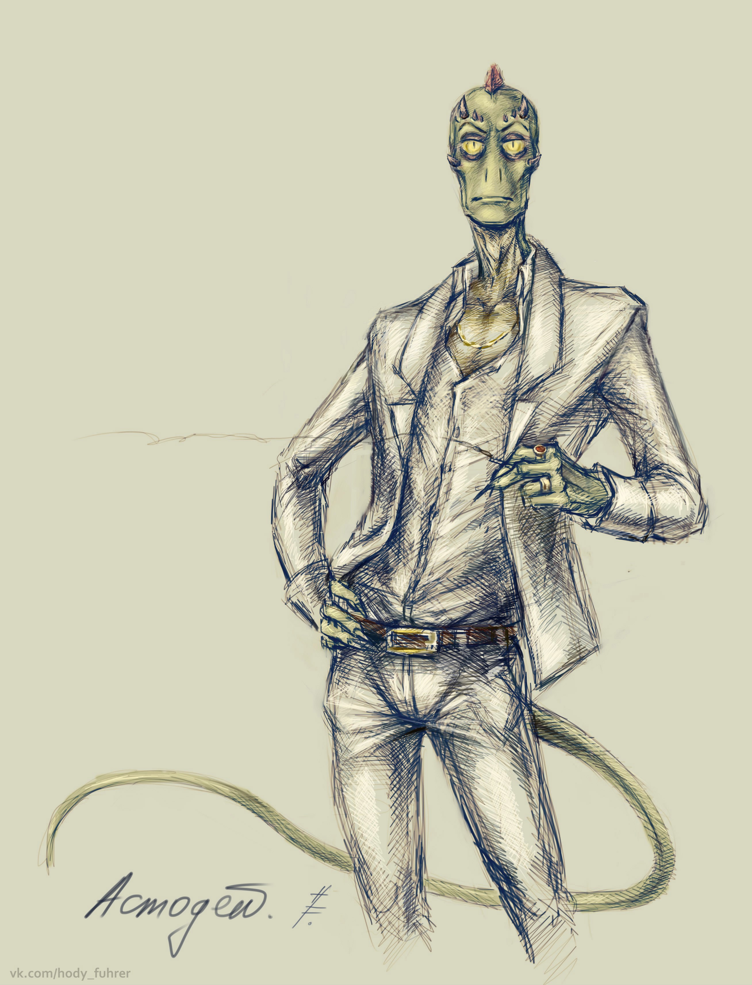 Асмодей. Архидемон, адов лорд. Входит в Клипот(единоличник антисефиры-клипы Голохаб). Друг Бельфегора, его «правая рука» и второй босс синдиката Тагерион. Пал с Небес лишь потому, что пал Бельфегор. Пришёл ко мне в полусне-полубодрствовании, причём лишь единожды.