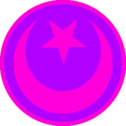 Флаг: лиловый полумесяц на малиновом поле, обращённый серпом вправо, в секторе которого расположена пятиконечная лиловая звезда