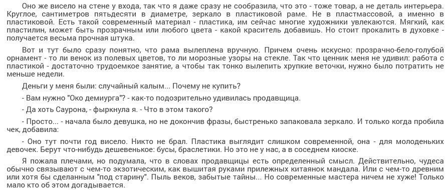 Если заинтересует, заглядывыйте сами, знакомьтесь, что покажет вам Око Демиурга.
