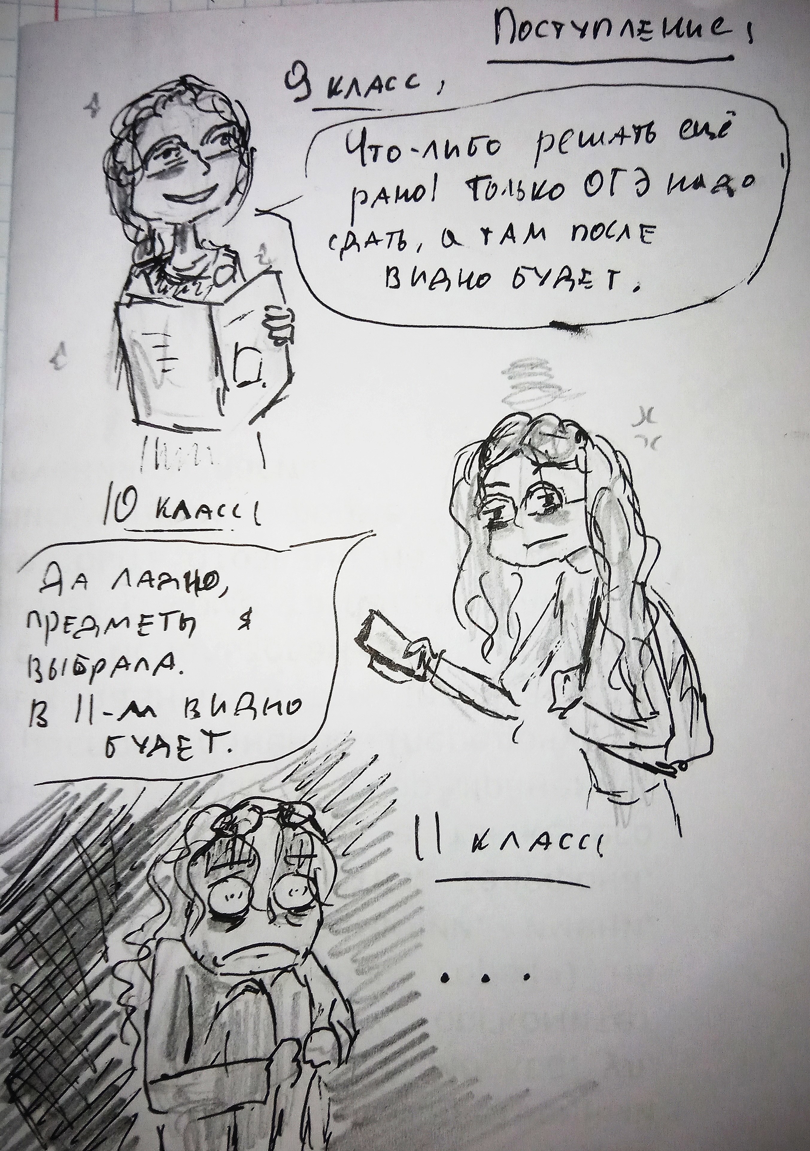 О наболевшем (гипербола) Автор: Стеклова Анастасия "В одиннадцатом видно будет". Отличная фраза, особенно весело становится, когда ты уже) поступление, жизнь, подростки, комикс 292 Пожаловаться