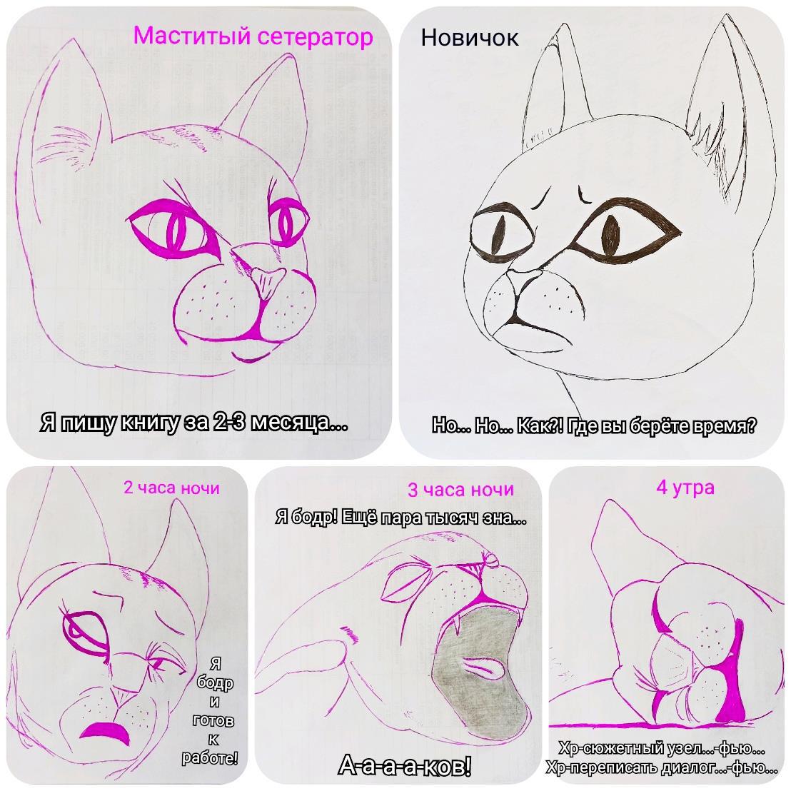 Сетератор в 4 утра Автор: Маргарита Искра Чижова писательство, рисунок, юмор, кот, комикс 258 Пожаловаться