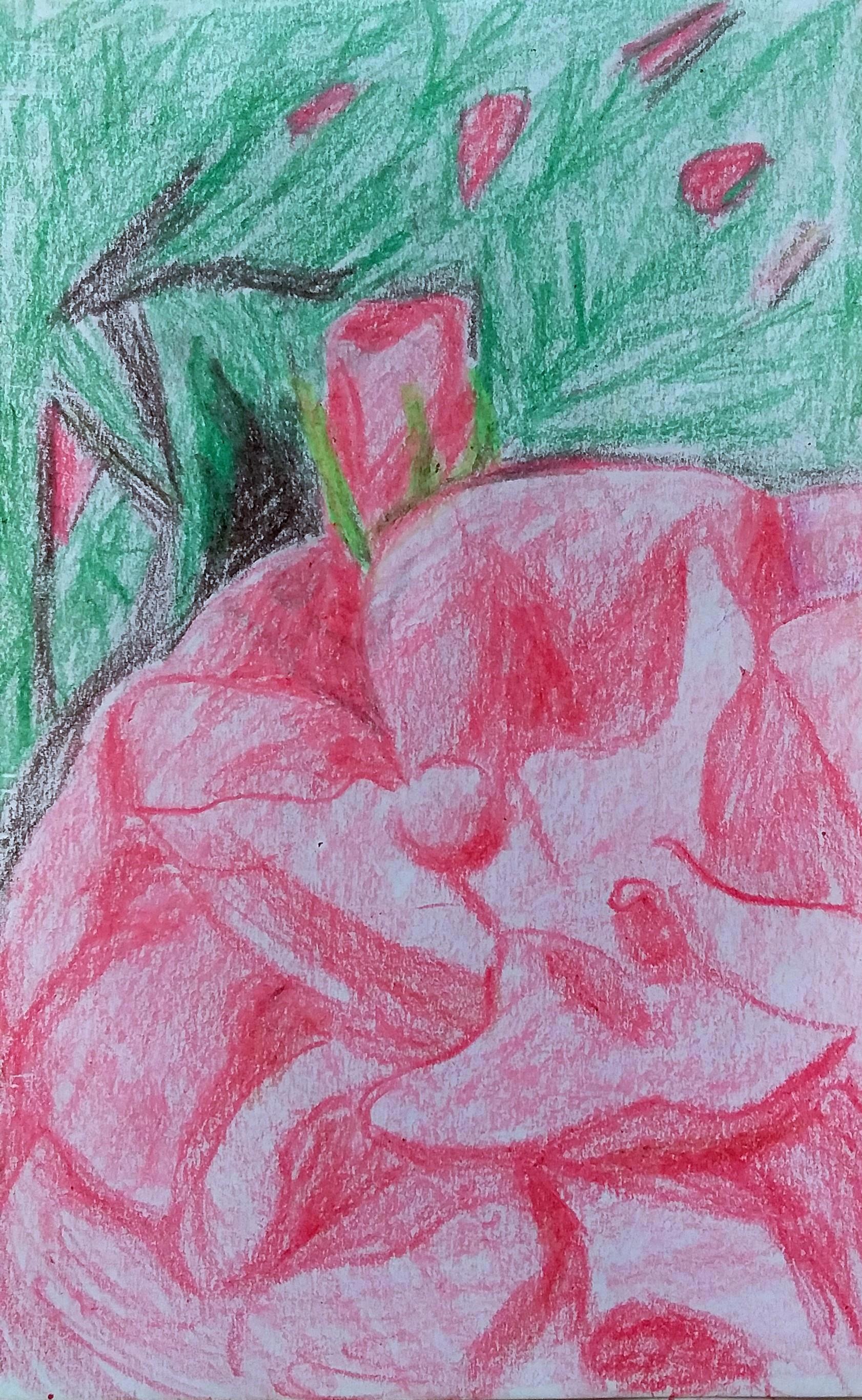 Первая попытка нарисовать цветок восковыми мелками. Интересный результат вышел)) Ну и да, для создания фона мелки будут попроще карандашей.