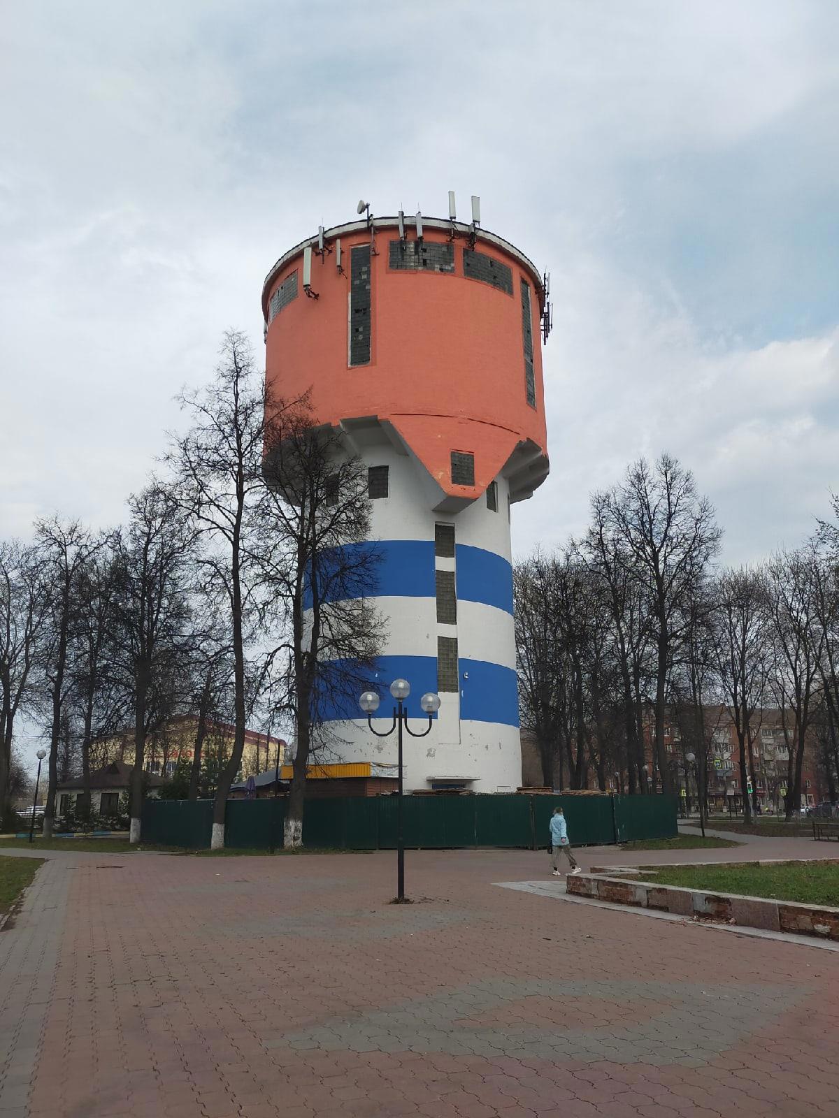 Слева Кировский сквер, старая водонапорная башня, раскрашенная под маяк. Почти с натуры – фото делала собственноручно в субботу
