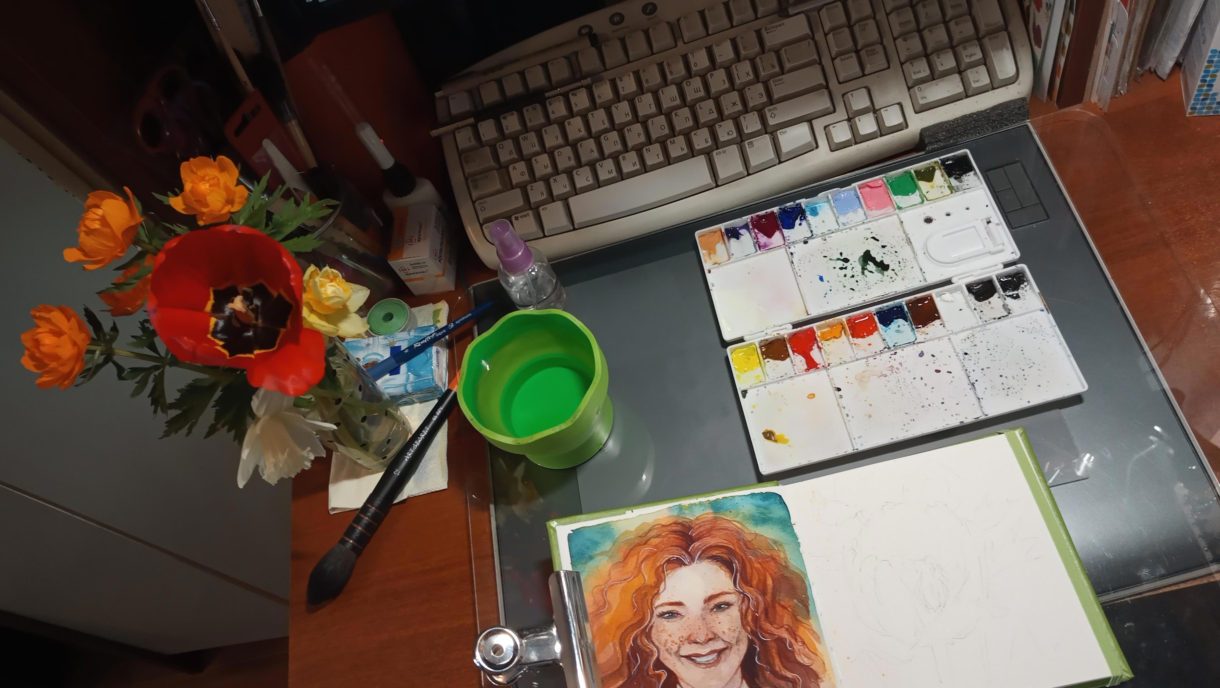 Использовала подзабытый было скетчбук Малевичъ маленький с хлопком и свою первую сборную палитру акварели. И без карандашей обойтись не смогла, сжульничала.