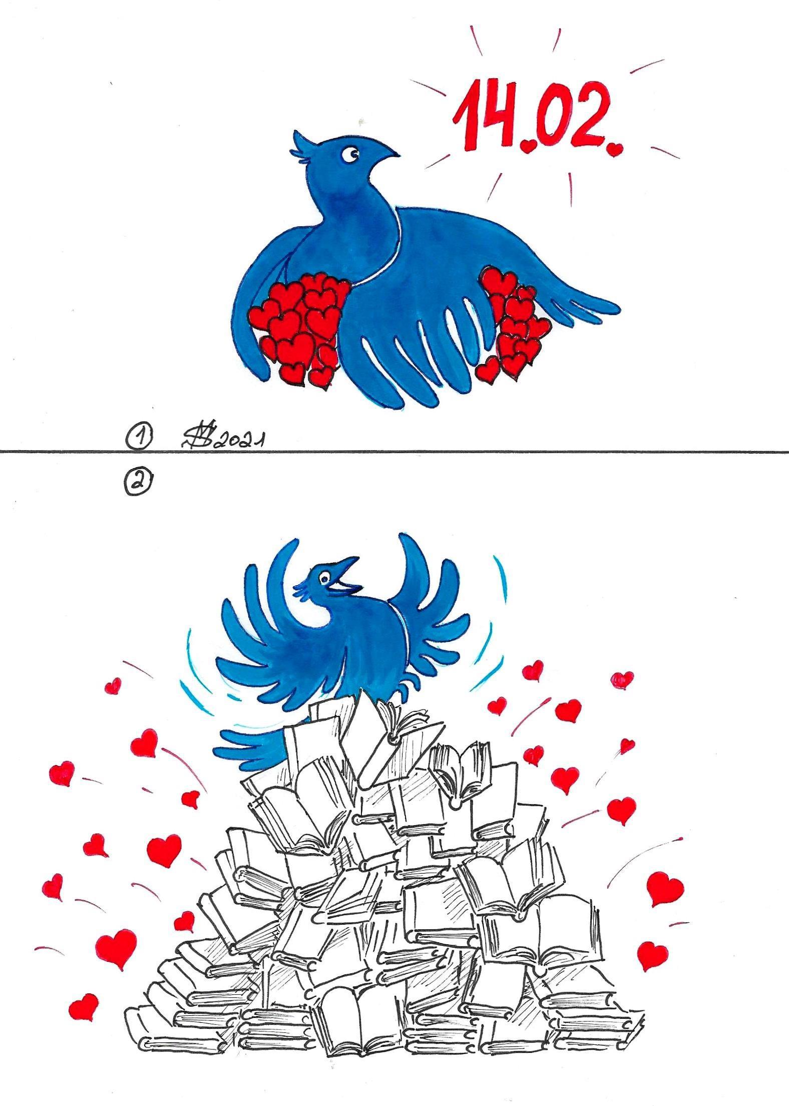 Стикеры и карикатуры, посвящённые символу сайта Автор Тудей — синему фениксу