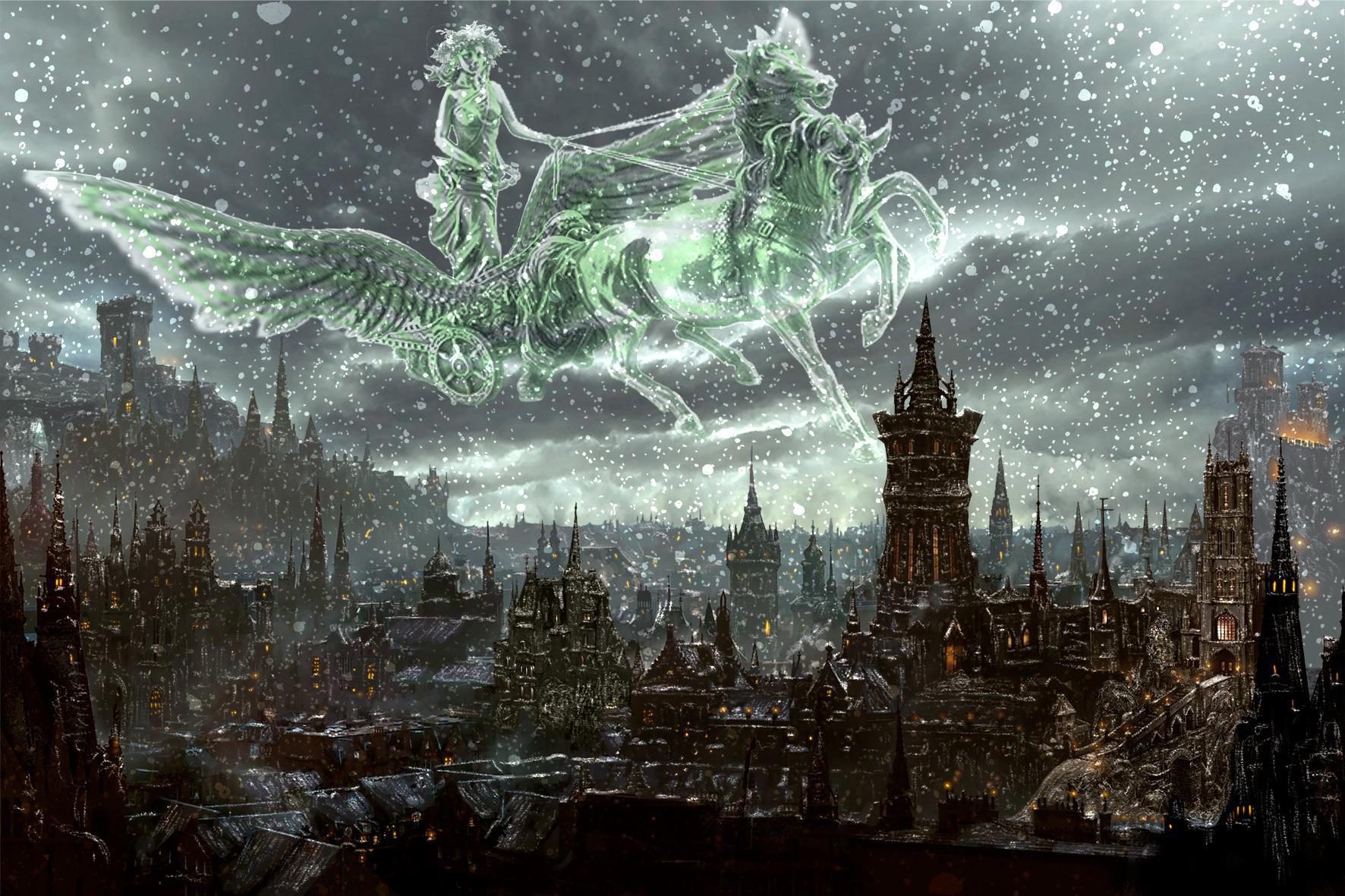 На излете зимы, холодной темной ночью, когда спится особенно крепко, а вылезать из постели слишком зябко, над городом, запряженная шестеркой крылатых коней, летит колесница, увитая цветами и травами. Неслышно бьют легкие копыта, шуршат крылья, похрапывают кони, вьются зеленые ленты – правит колесницей сама Весна. Все спят, и никто не видит, что она уже здесь…