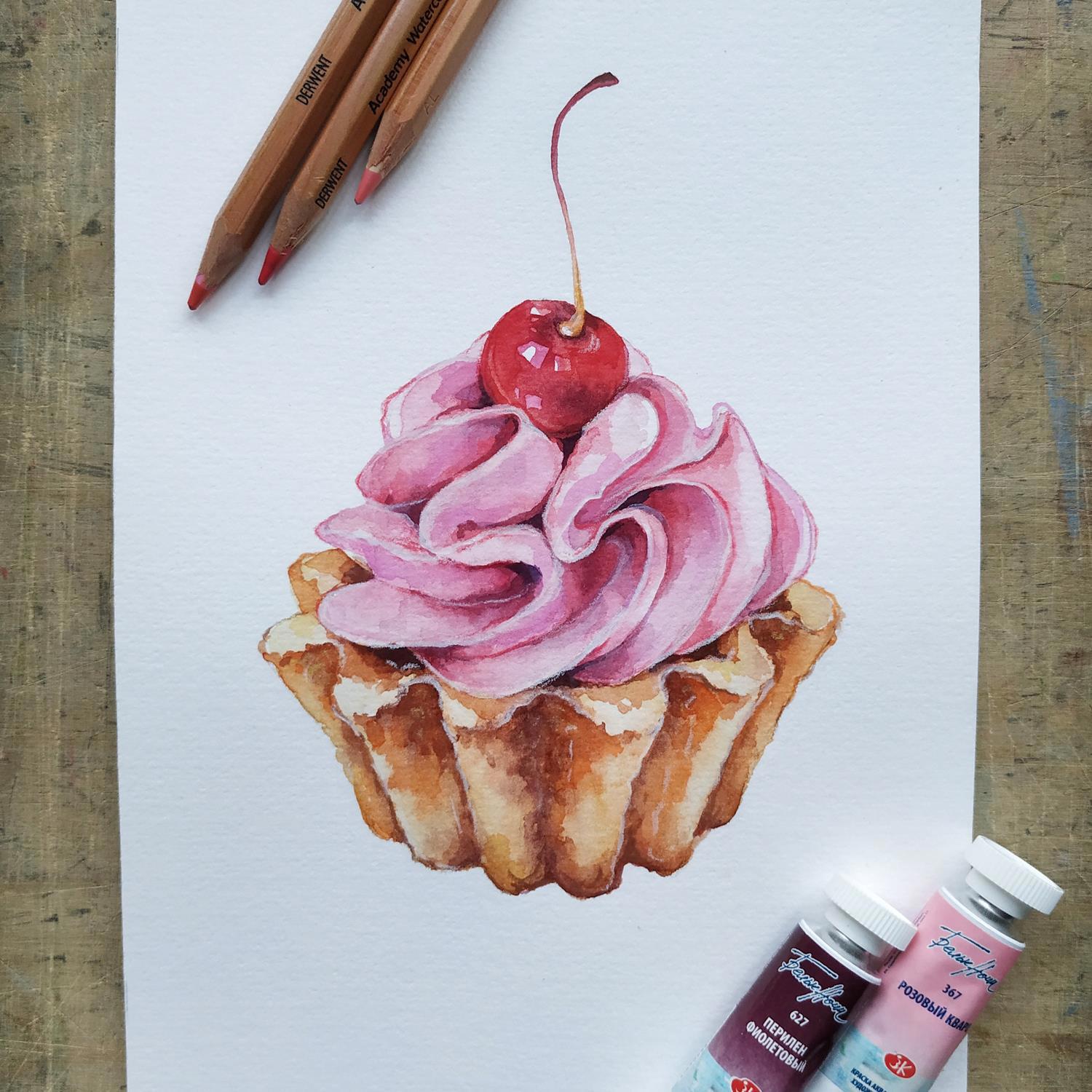 Пироженки Автор: Tanmorna акварель, акварельные карандаши, акварельный скетч, арт, арт акварелью 591 Пожаловаться