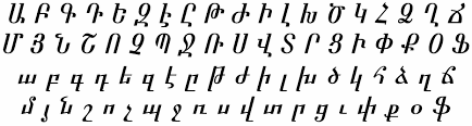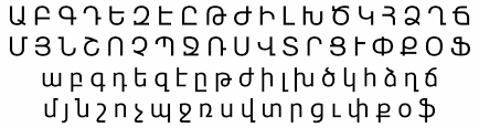 Обратите внимание, сравните с предыдущими грузинскими - они довольно отличаются. И грузинский шрифт придумали армянские учёные. Но они разные. Это заметно. Как и языки.