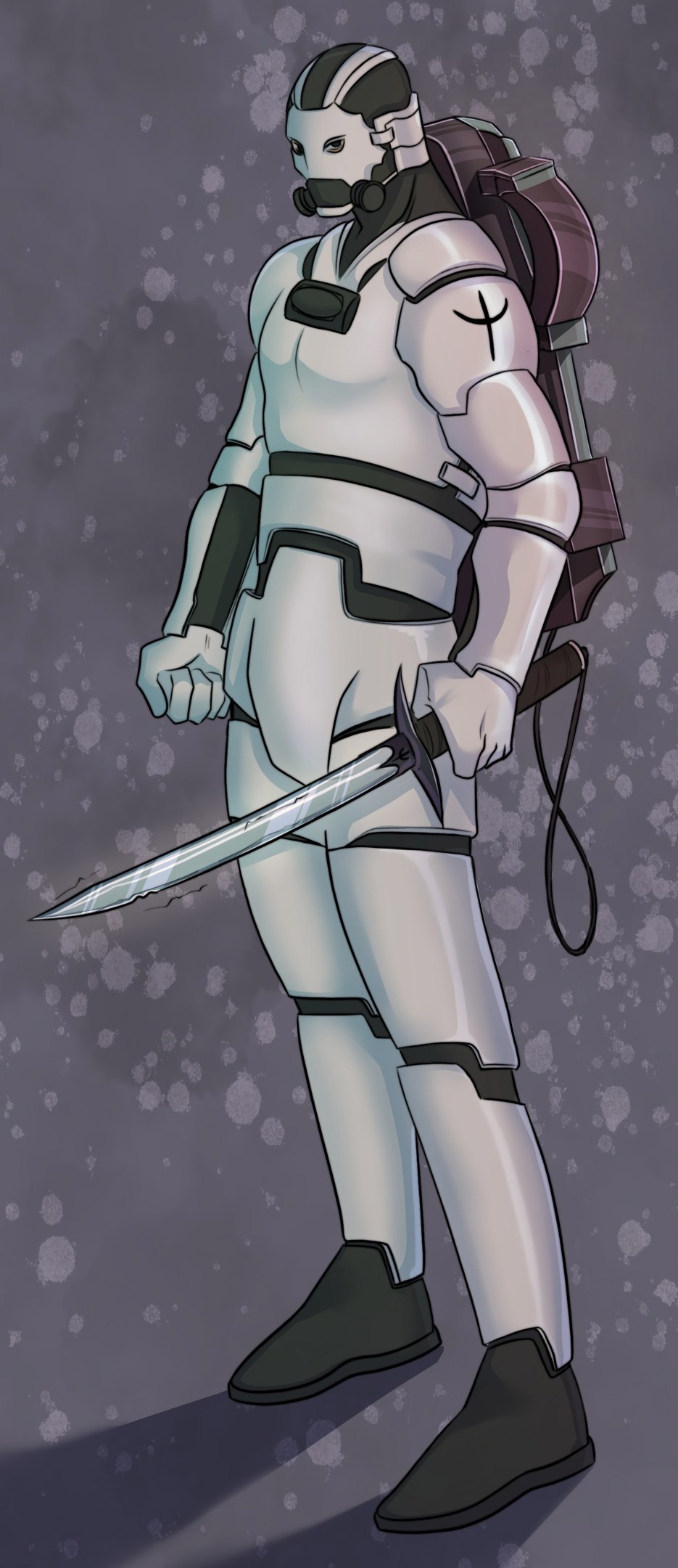 "Ястреб" - лейтенант ЧВК "Череп". 27 лет. Виртуозный пилот реактивного ранца. Вооружен особым вибрирующим мечом с аккумулятором в рукояти, который режет любой металл.