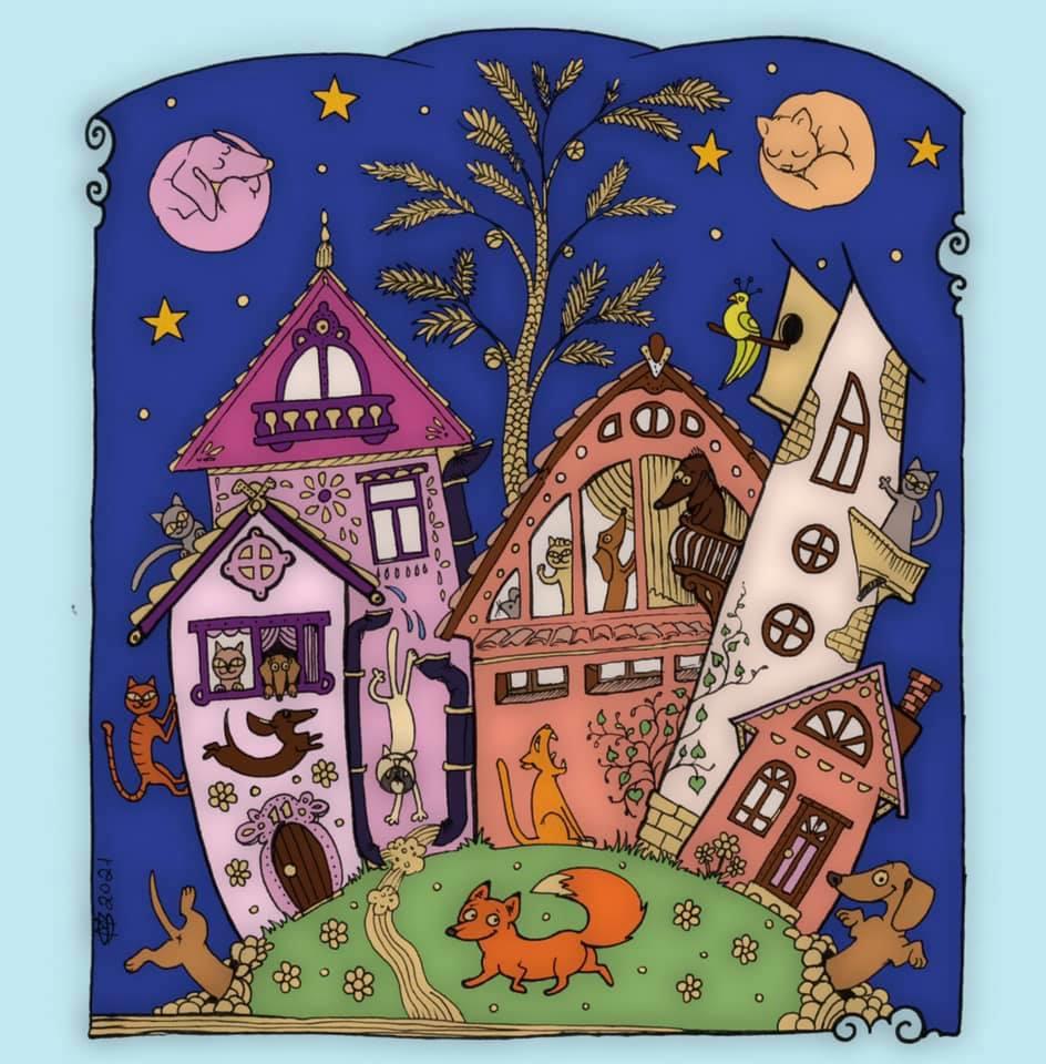 Раскраска таксы и кошки Автор: Marika Stanovoi готовораскрашено Шарон Бойес-Шиллер раскраска 803 Пожаловаться