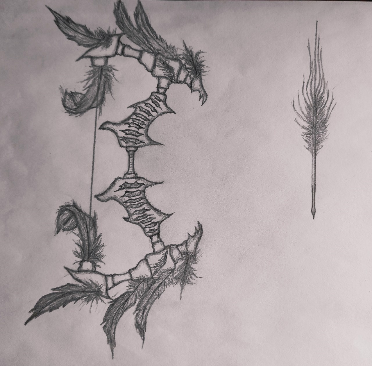 Костяной лук "Перьевое бедствие пустоты" и стрела "Перья пустоты".